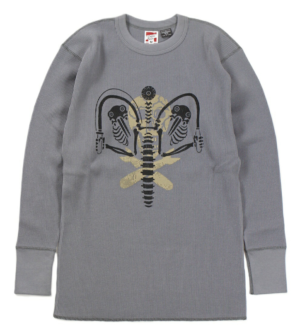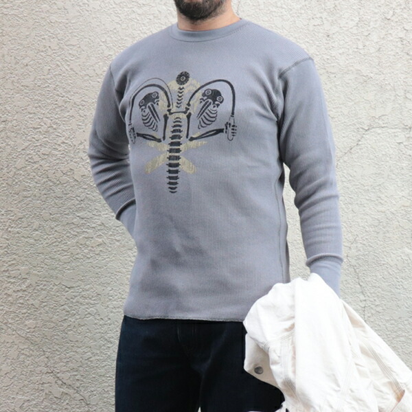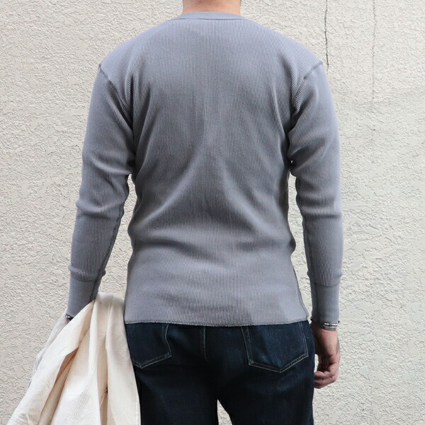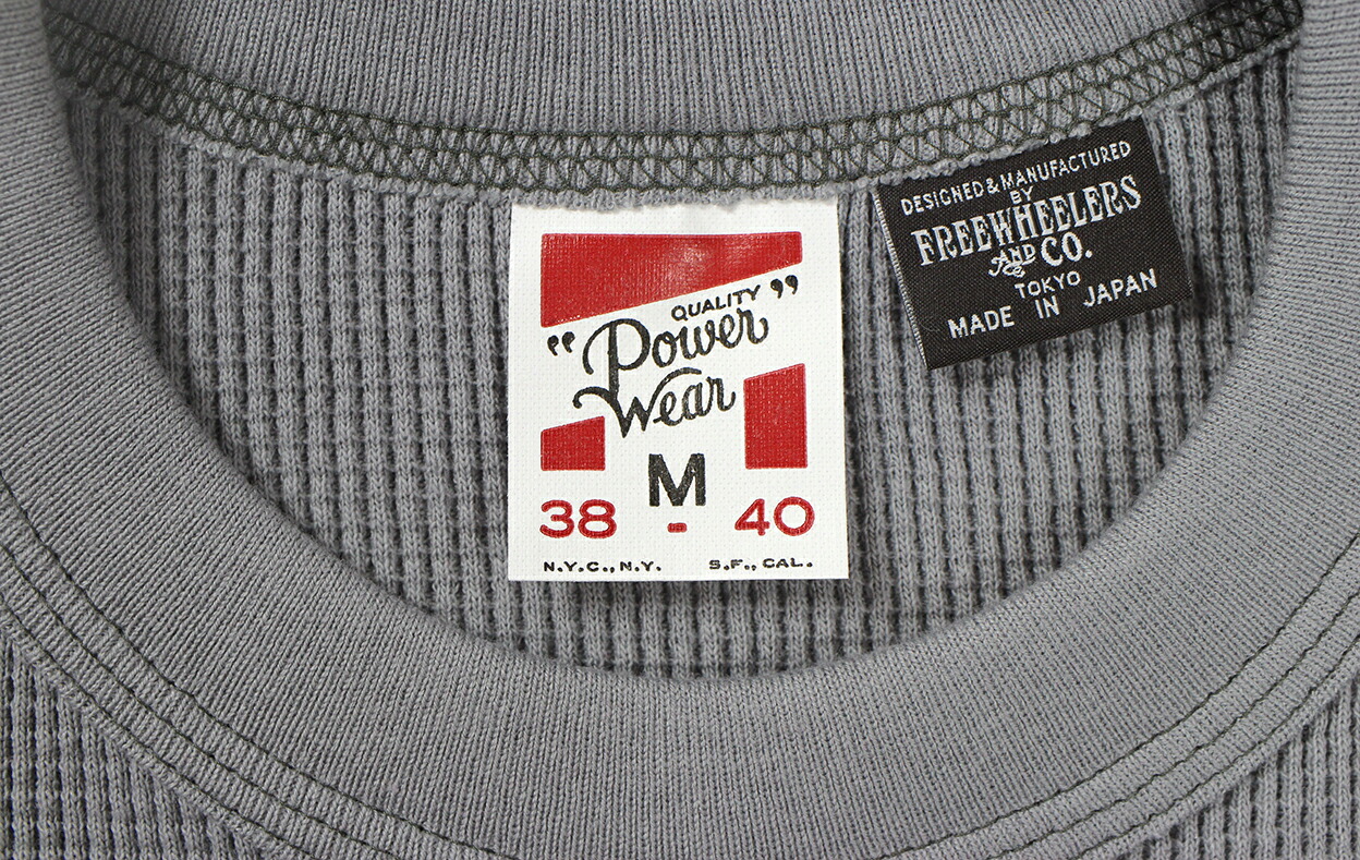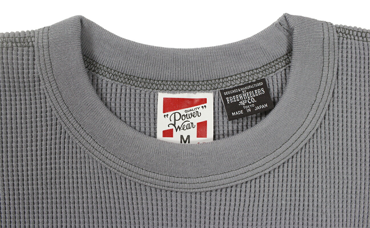 FREE WHEELERS의 2025년 가을·겨울 컬렉션에서 선보이는 1940년대 스타일의 크루넥 서멀 롱슬리브 티셔츠입니다.
