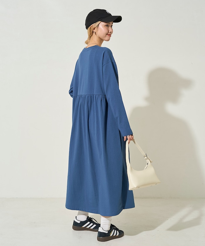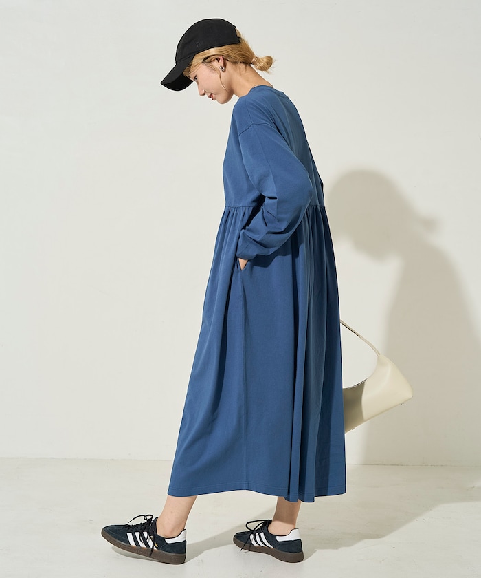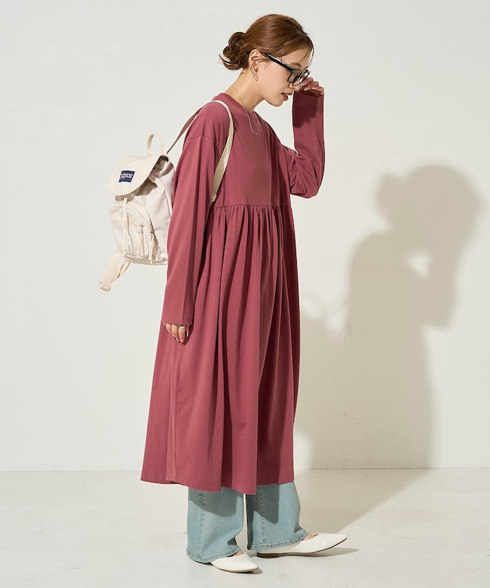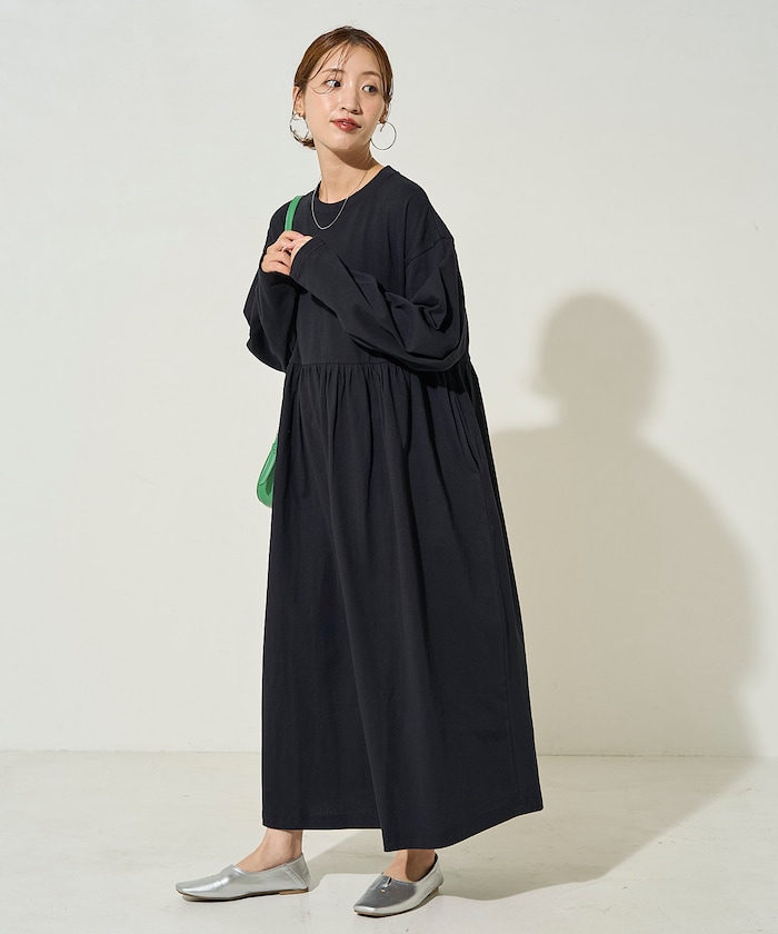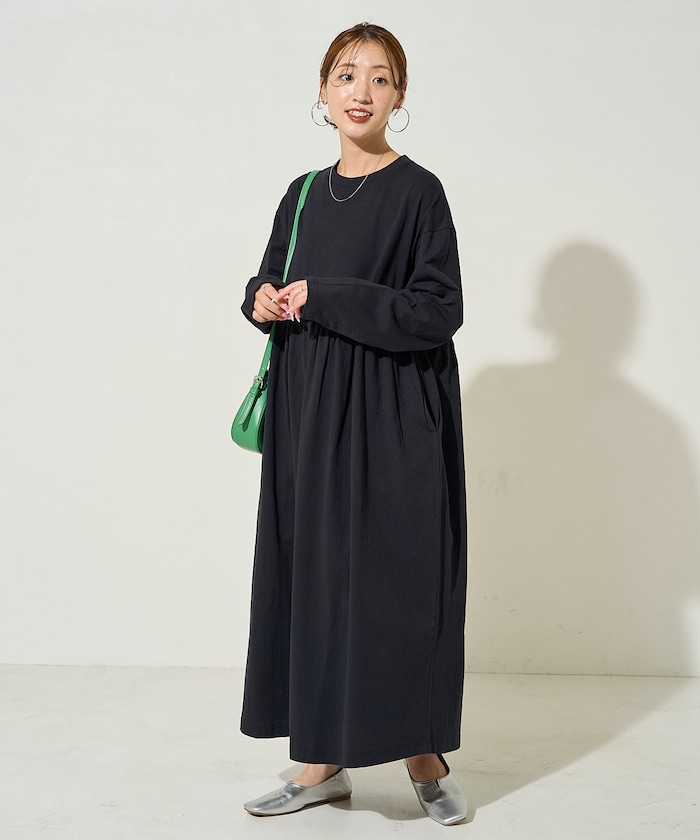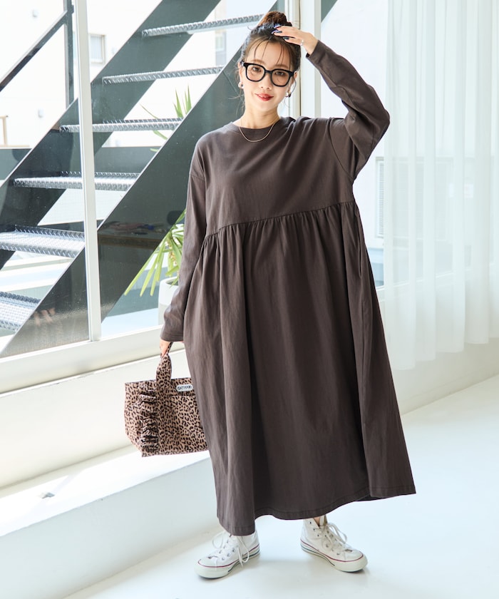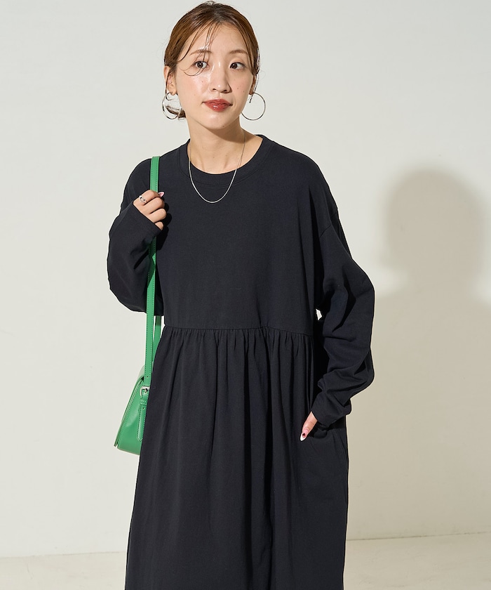 허리 셔링으로 여성스러움과 체형보정 효과가 있는 원피스.