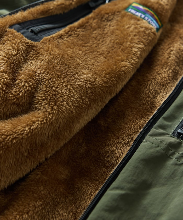 탄탄한 나일론 원단과 부드러운 마이크로 보아 플리스를 양면으로 즐길 수 있는 블루종입니다. 여유있는 품과 적당한 와이드 실루엣입니다.