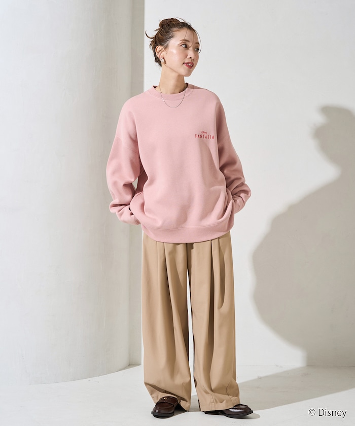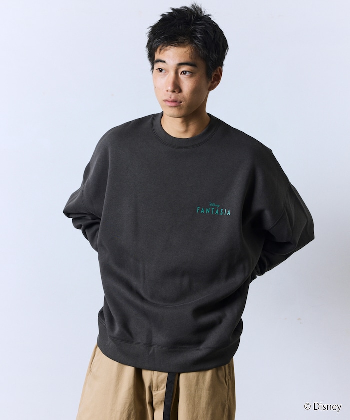 판타지아에 등장하는 장면의 스웨트 티. 부드럽고 따뜻한 기모안감 소재를 사용하며 적당한 빅 실루엣입니다.