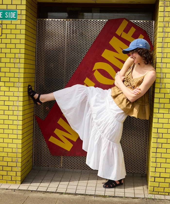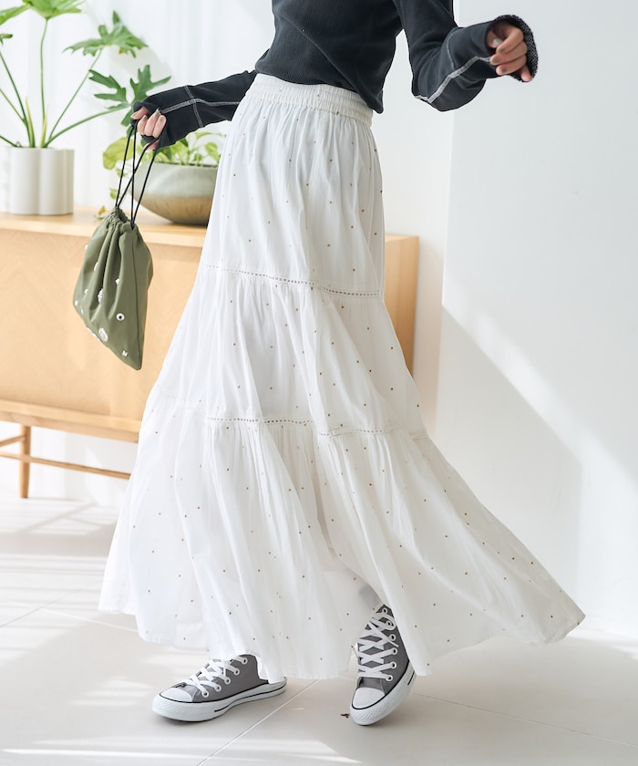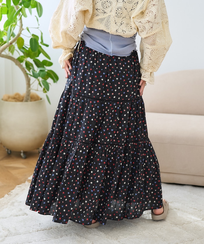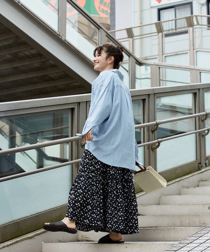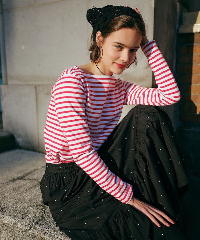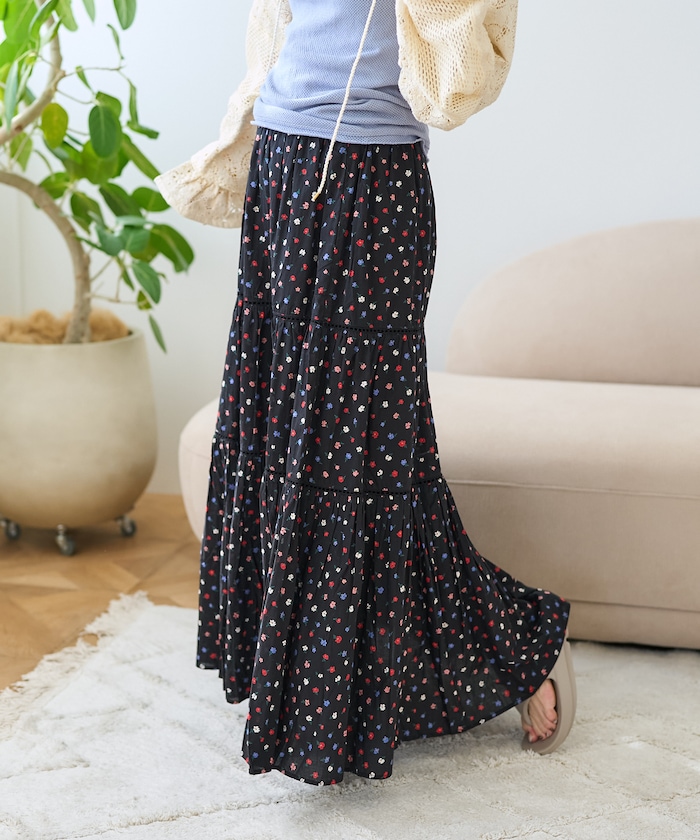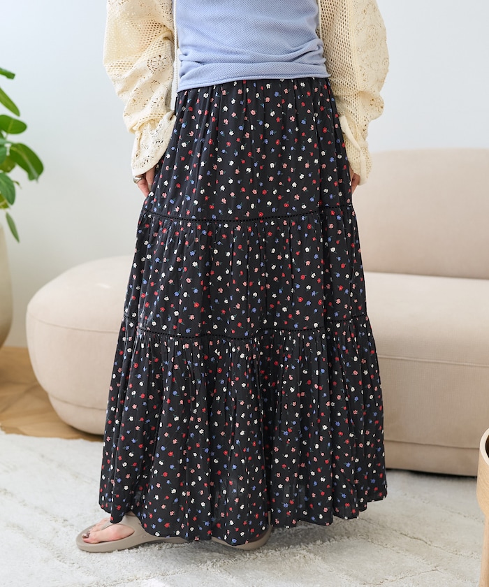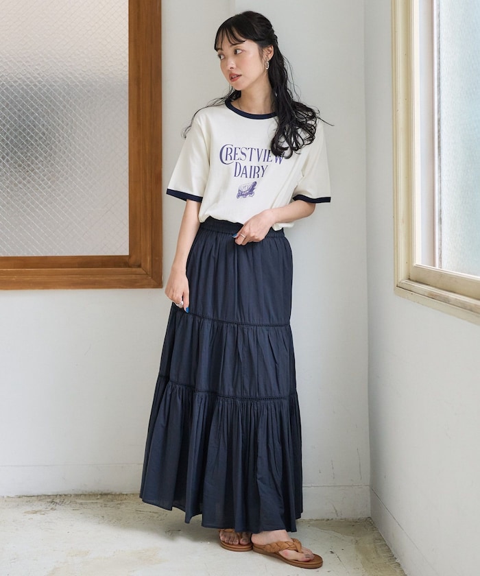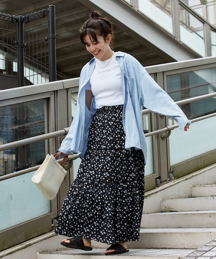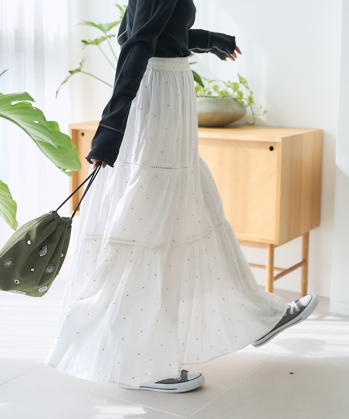 - 허리 부분은 절개선을 낮춘 티어드 디자인으로, 하체는 자연스럽게 퍼지는 실루엣