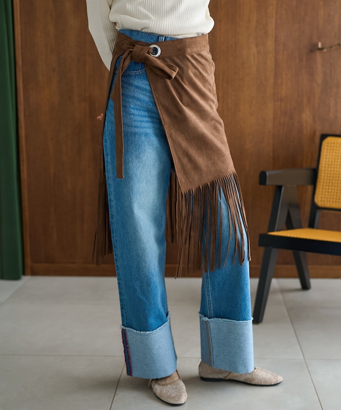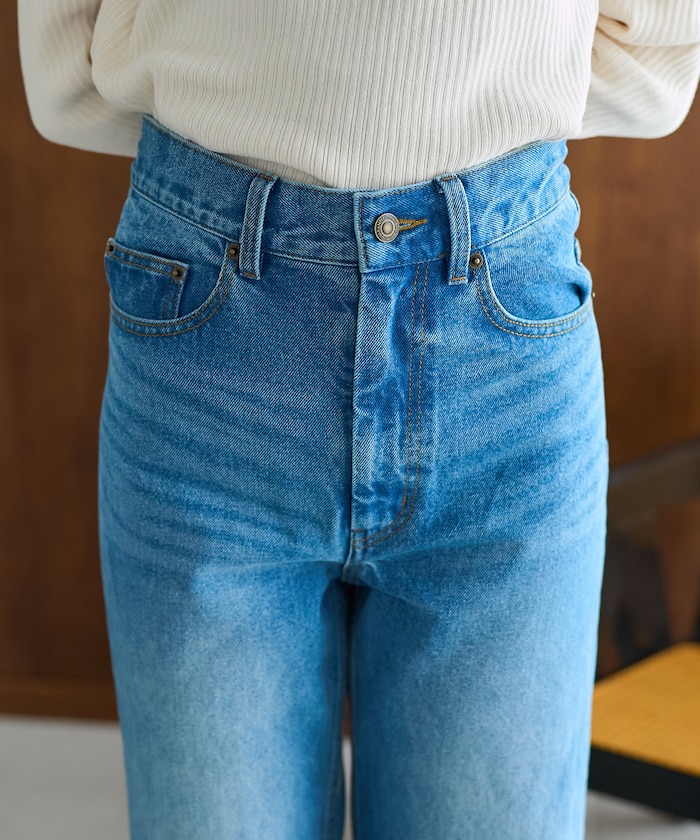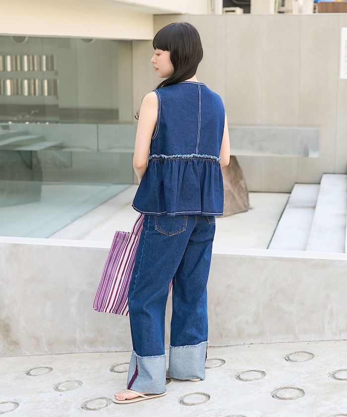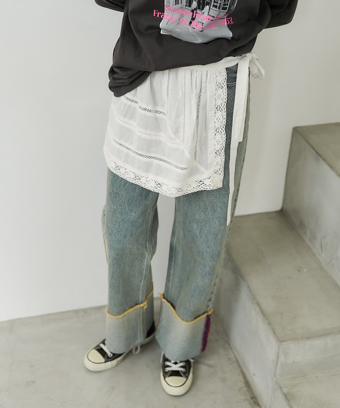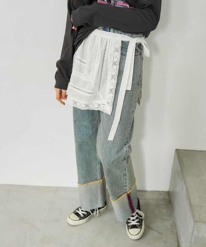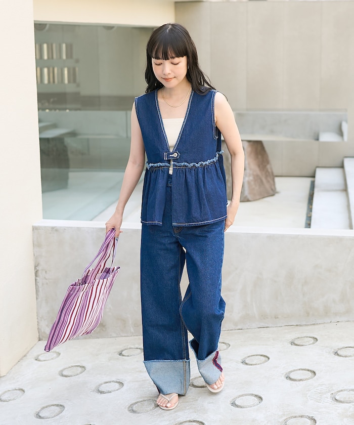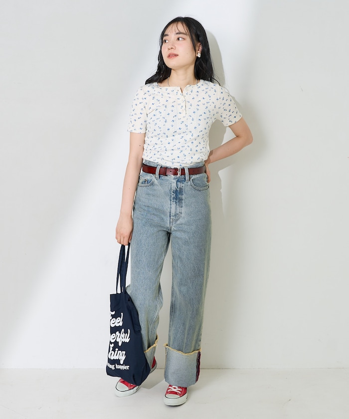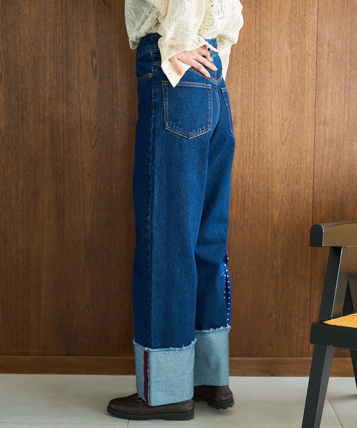 - 넓은 롤업 디테일 이 스타일링에 포인트를 더해주는 데님 팬츠