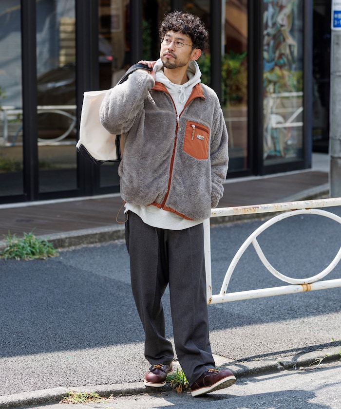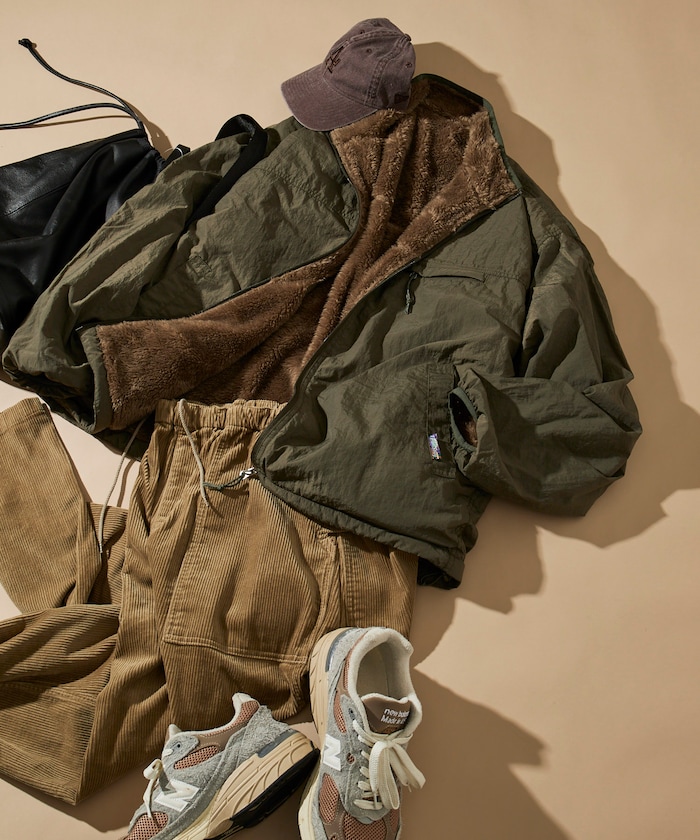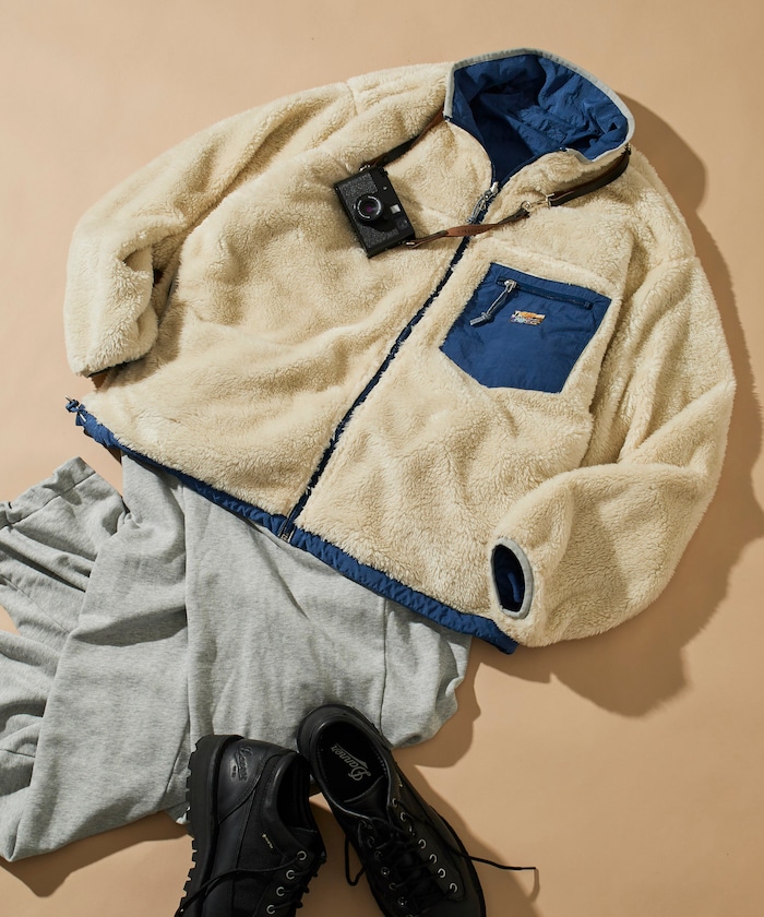 은은한 광택과 발수 가공의 나일론, 보아플리스 리버시블 재킷. 밑단은 고무 스핀들로 실루엣을 조절할 수 있습니다.