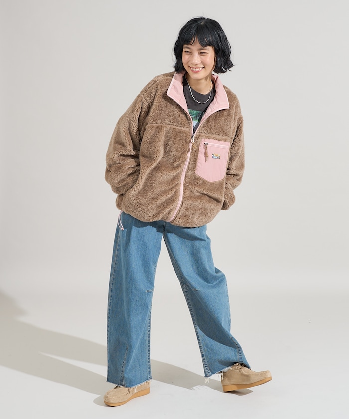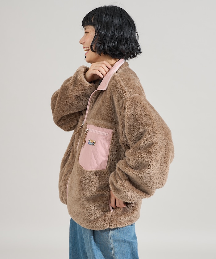 트렌디한 컬러 배색과 따뜻한 질감이 돋보이는 보아 × 나일론 리버서블 자켓입니다. 사이드포켓, 가슴 포켓이 있으며 포켓에 오리지널 네임 태그가 있습니다.