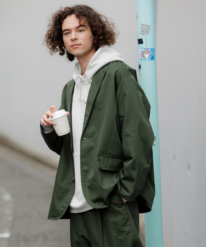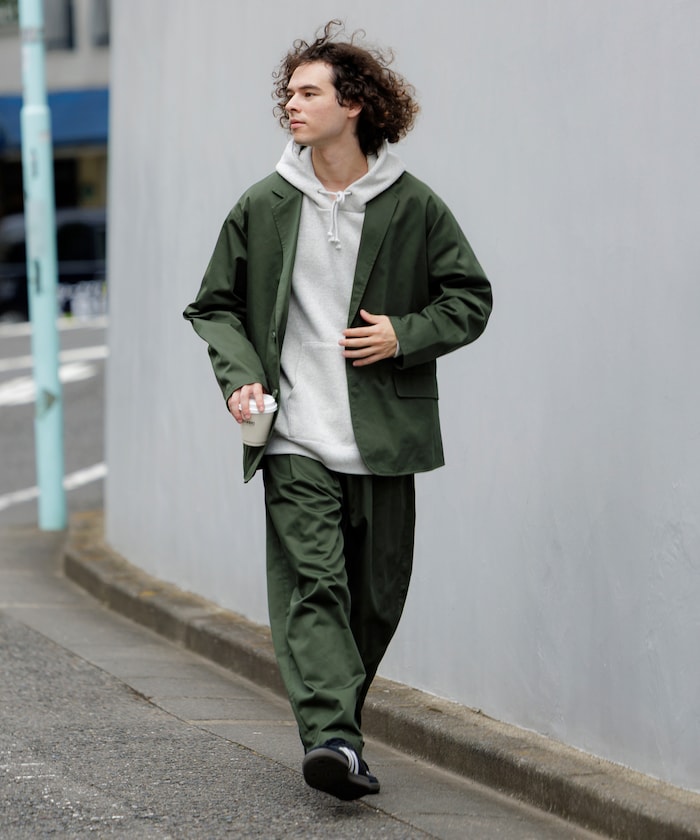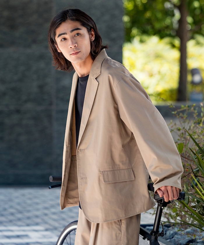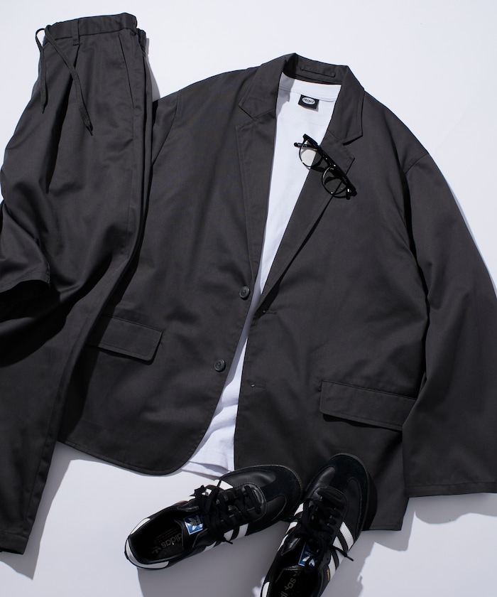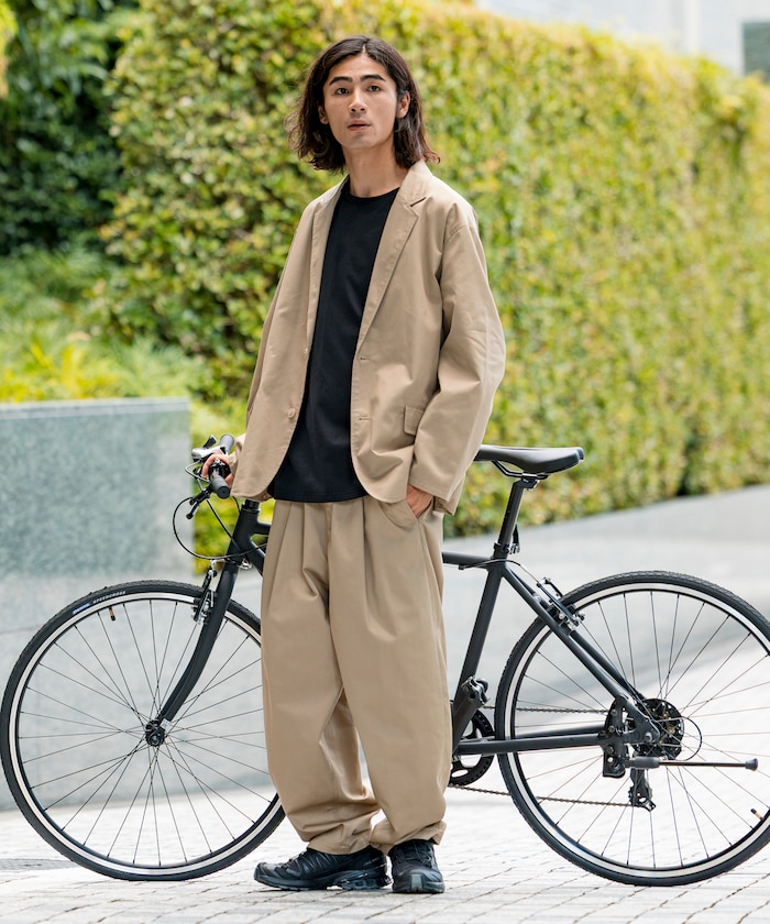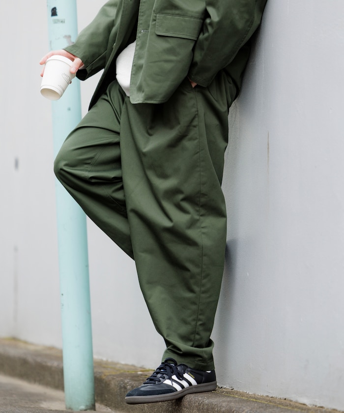 코튼 × 폴리에스터 혼방의 적당한 탄력감 있는 T/C 트윌 소재의 셋업. 팬츠는 세미 와이드 스트레이트 실루엣입니다.
