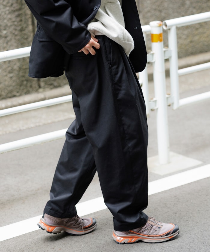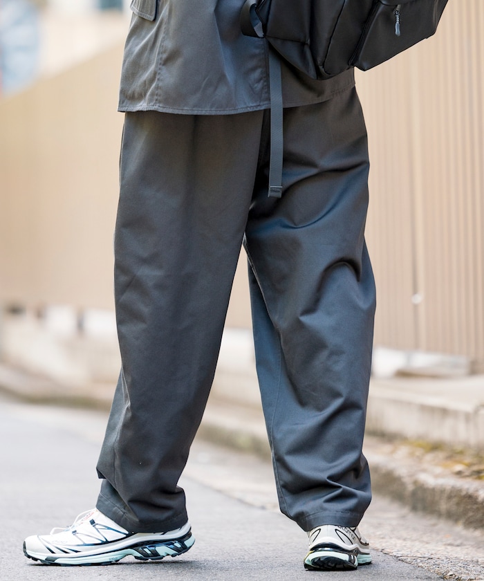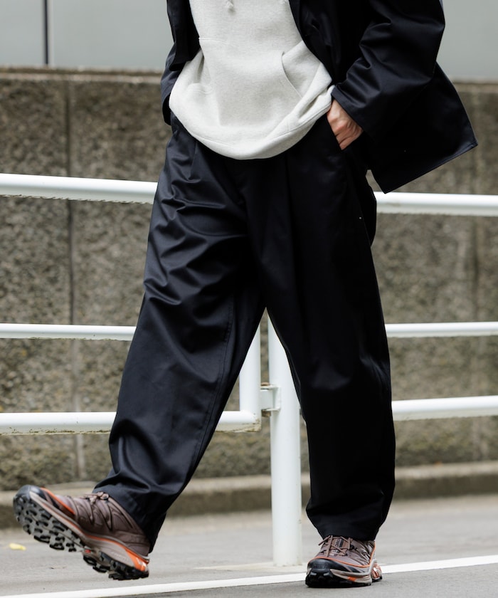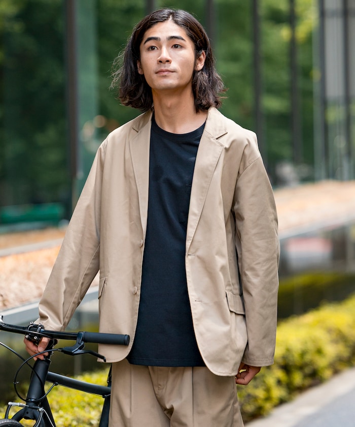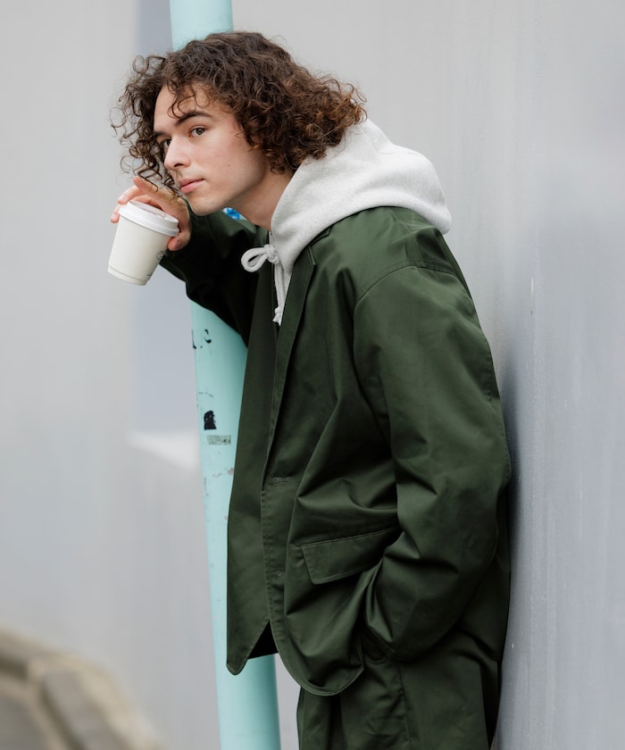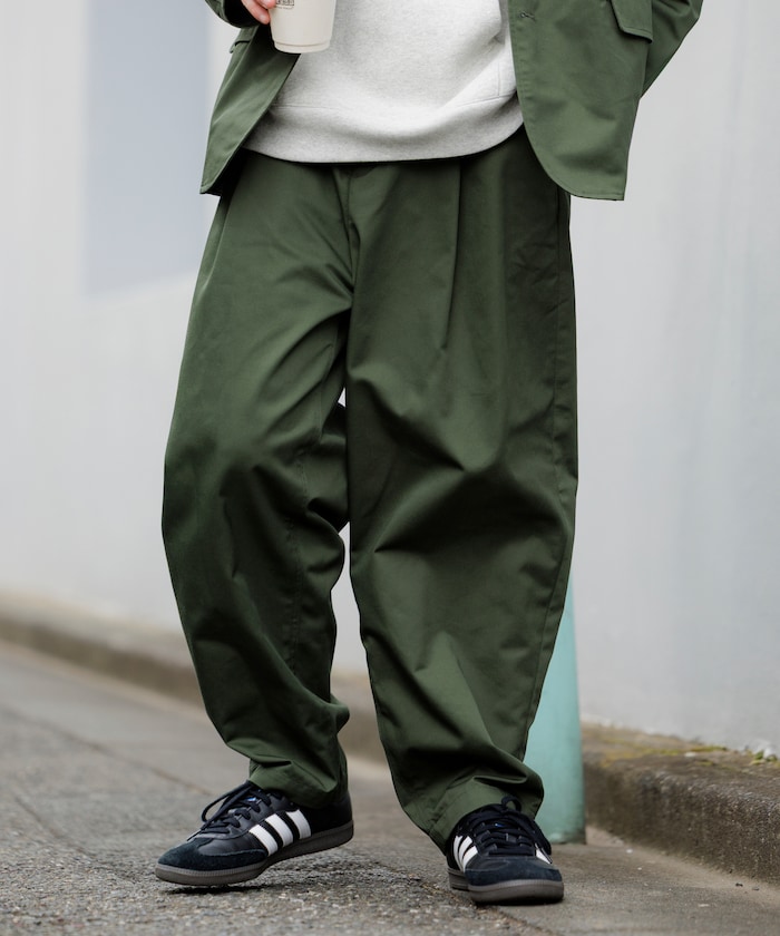 코튼 × 폴리에스터 혼방의 적당한 탄력감 있는 T/C 트윌 소재의 셋업. 팬츠는 세미 와이드 스트레이트 실루엣입니다.