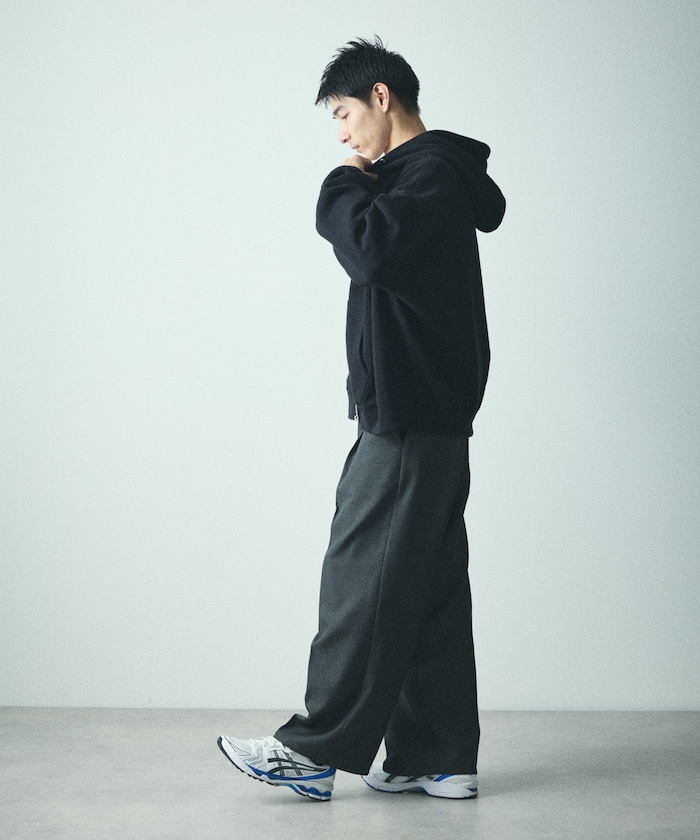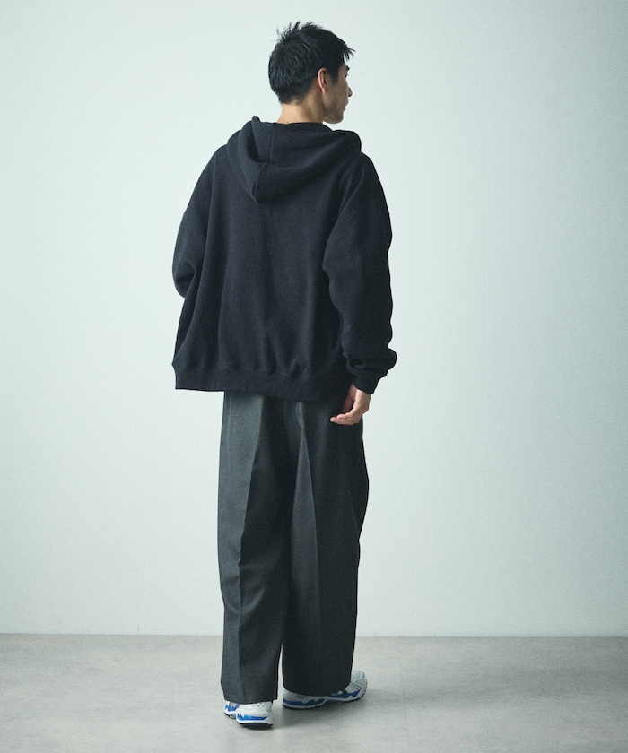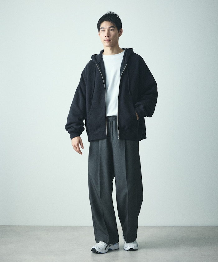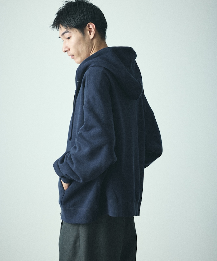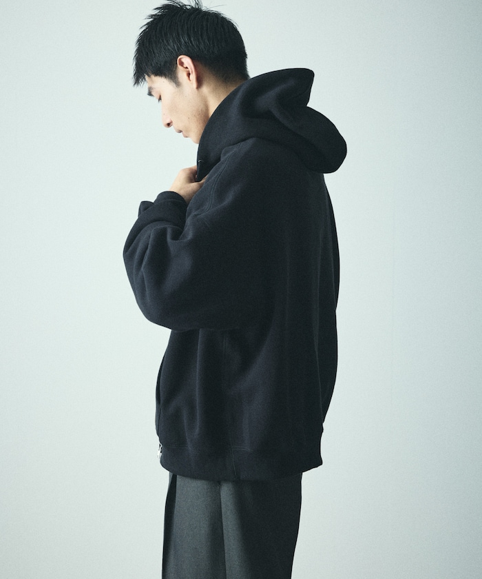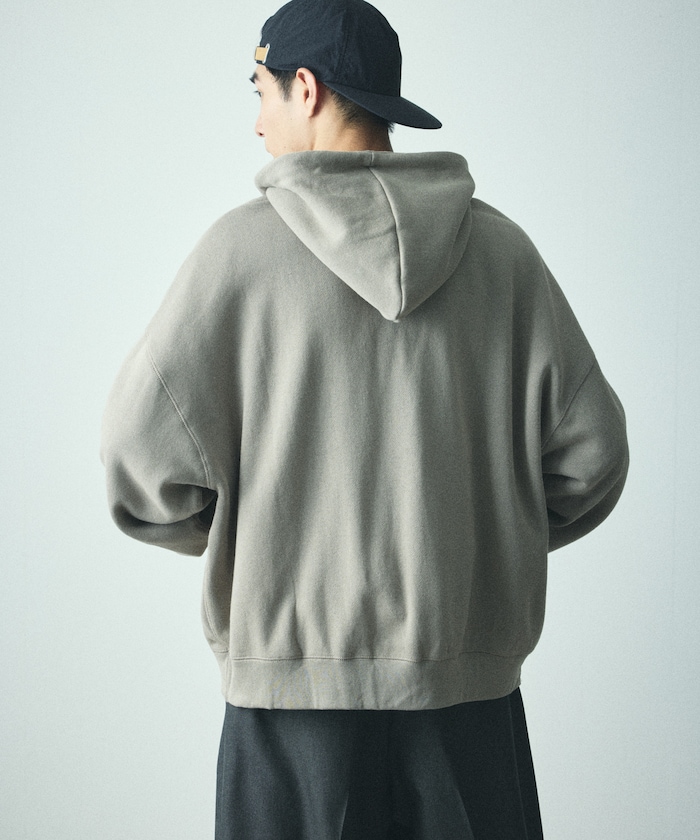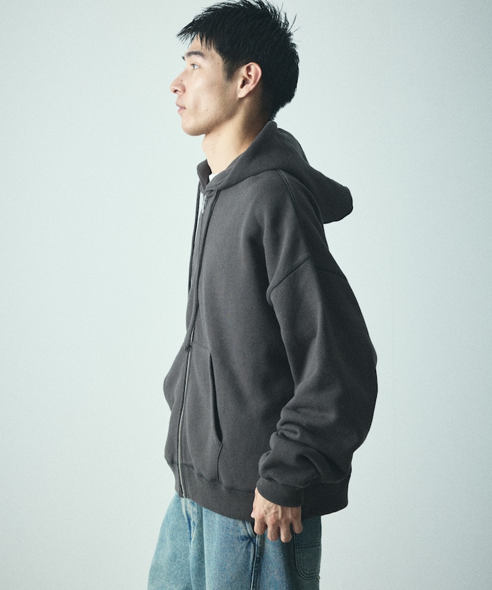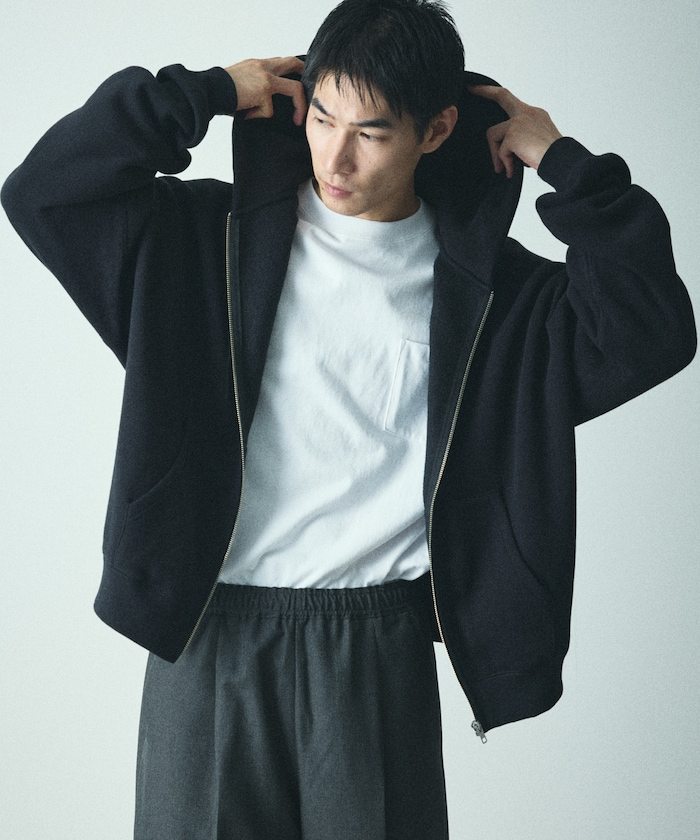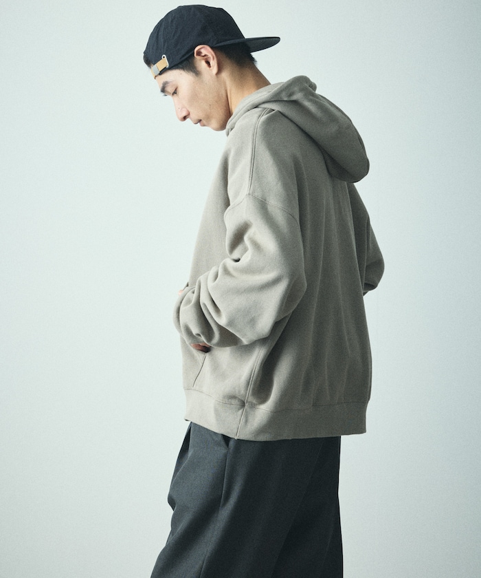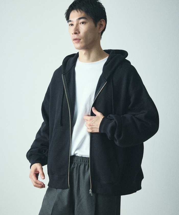 올시즌 사용할 수 있는 심플한 풀지퍼 파커. 부드러운 기모 소재이며 적당한 빅 실루엣입니다.