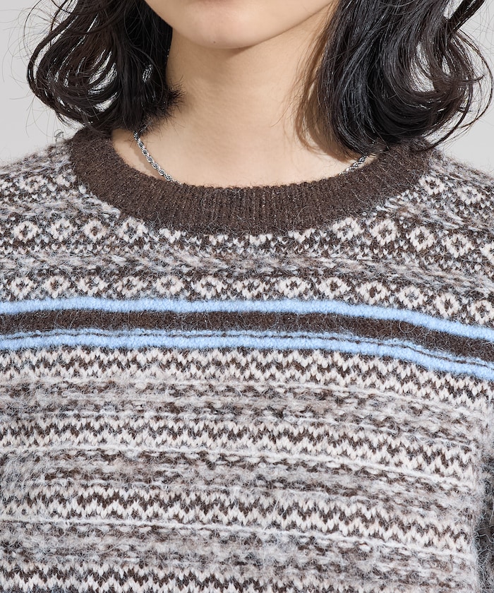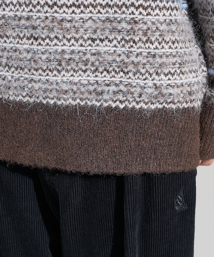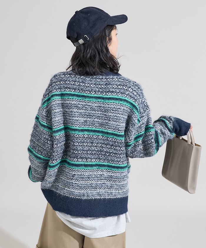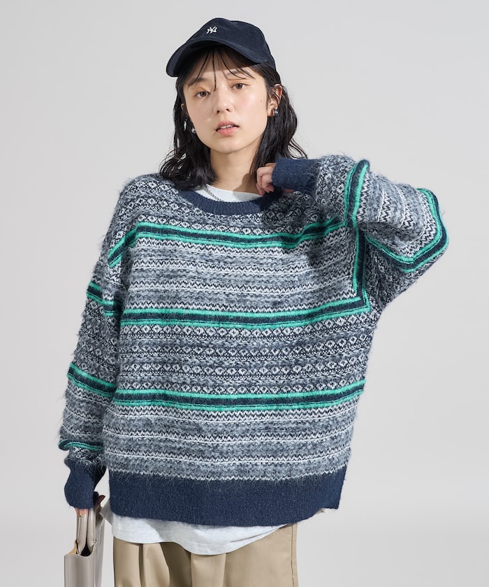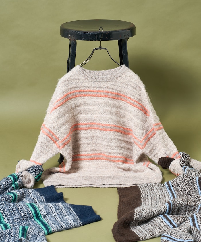 시선을 사로잡는 캐치한 컬러 배색의 니트. 부드럽고 포근한 소프트 터치 소재로 하루 종일 편안한 착용감입니다. 여유 있는 루즈핏 실루엣입니다.