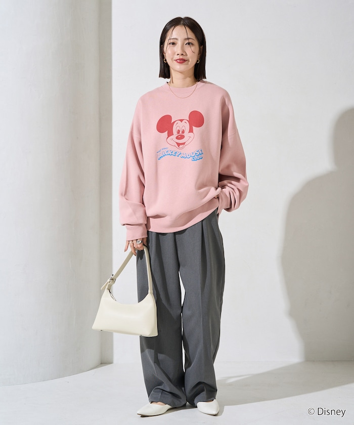 미키마우스 디자인이 두드러지는 대형 프린트의 스웨트 티.