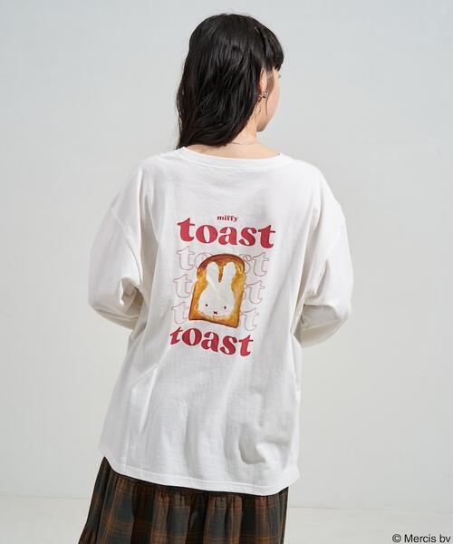토스트와 미피의 얼굴 캐치 디자인의 긴팔 티