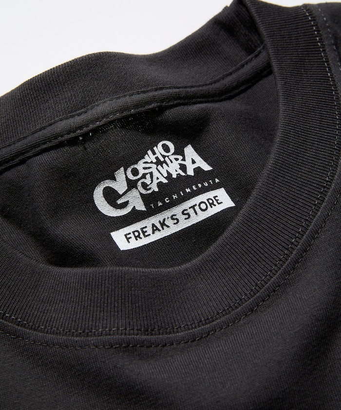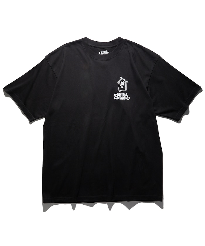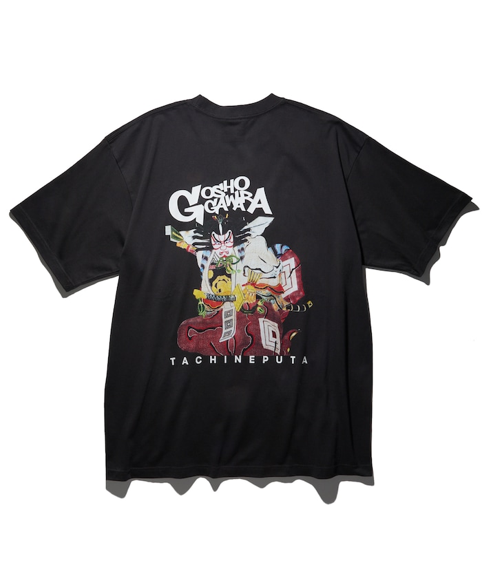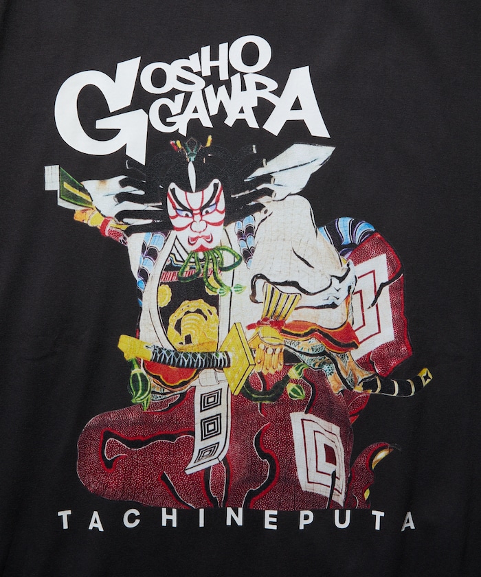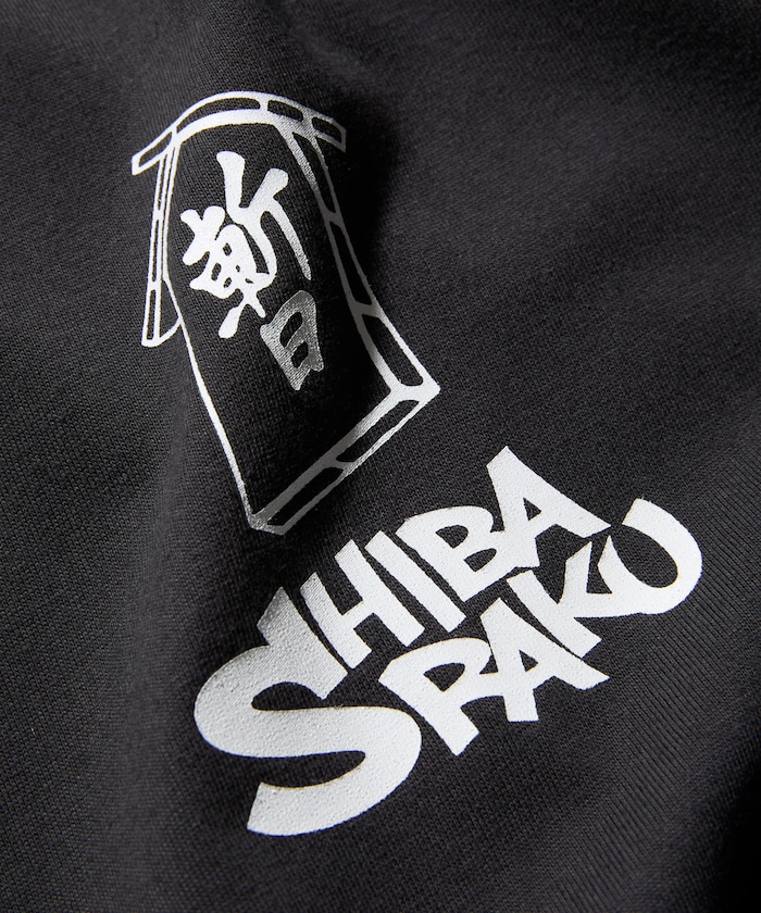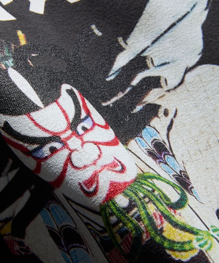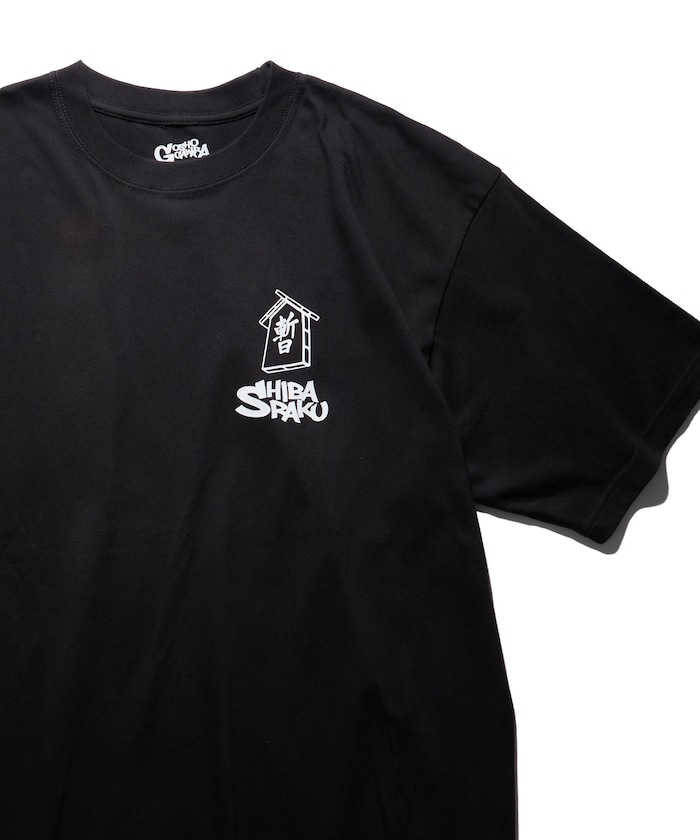 시바라쿠를 테마로 디자인된 콜라보 티입니다. 전면은 심플한 원 포인트 디자인으로, 등판에는 대담한 프린트를 배치하였습니다.