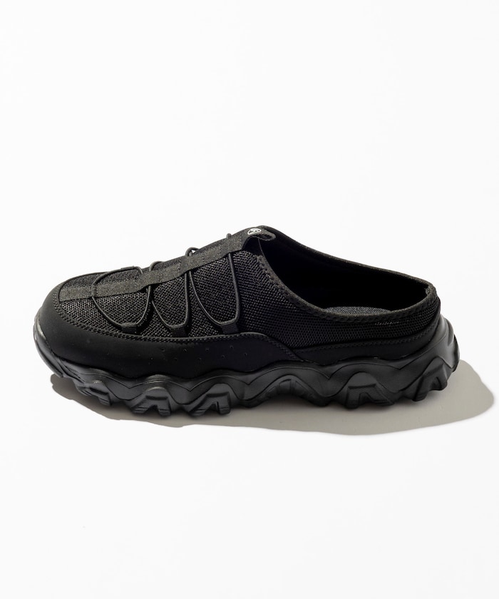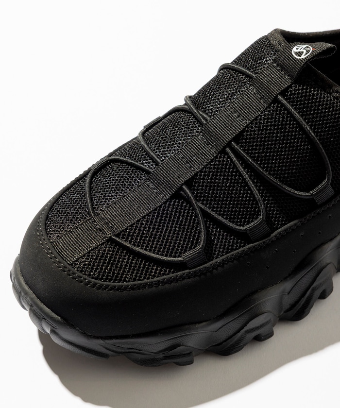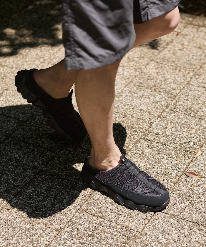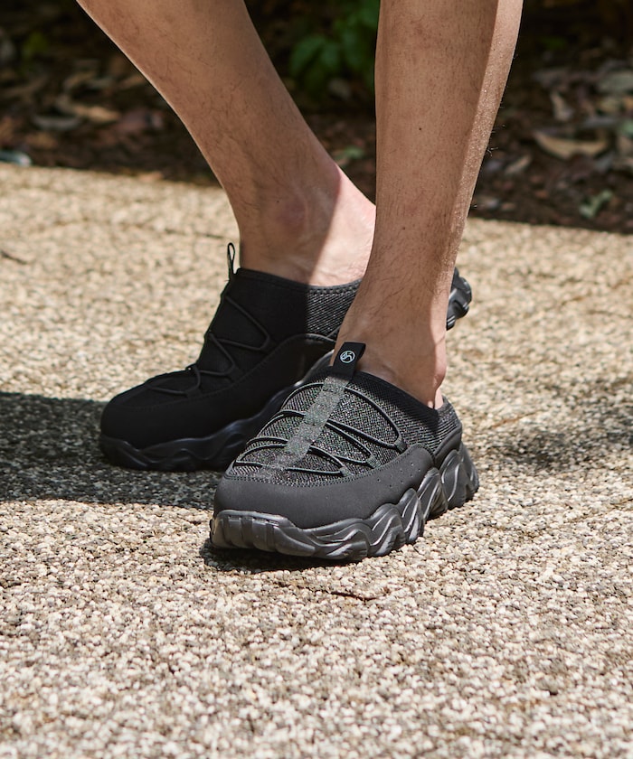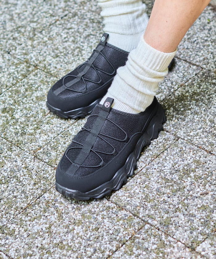 메쉬 어퍼 , 누벅 느낌의 머드가드 , 드로스트링 디테일이 특징입니다.