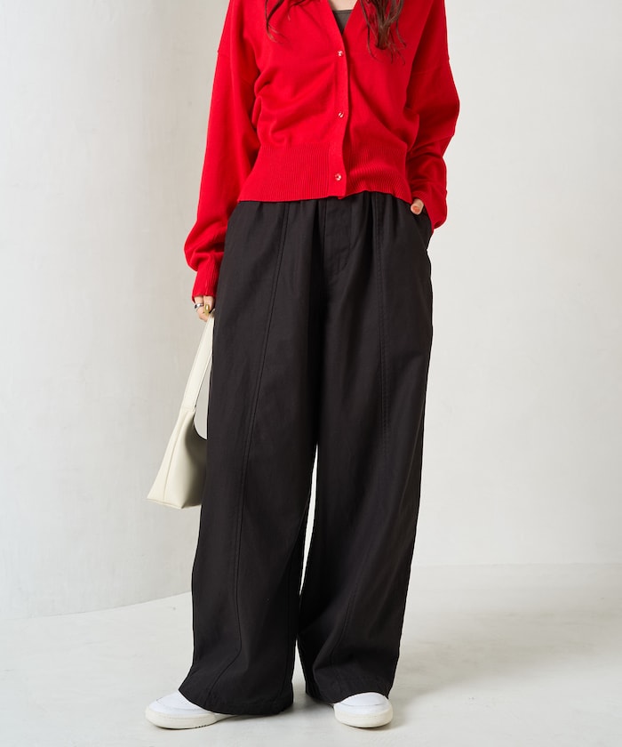 은은한 탄탄함이 느껴지는 백트윌 원단으로, 입체적인 실루엣의 팬츠