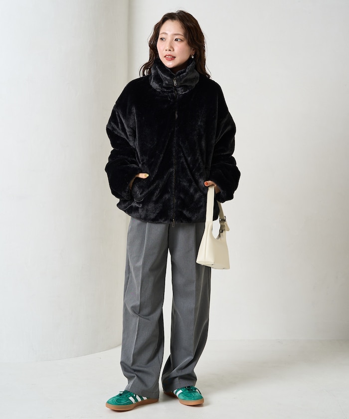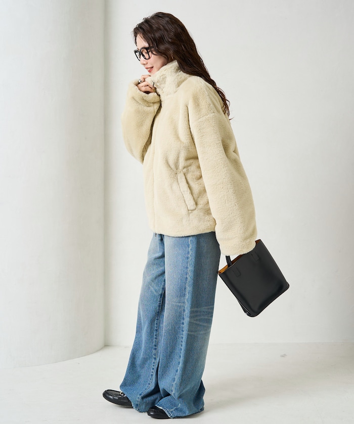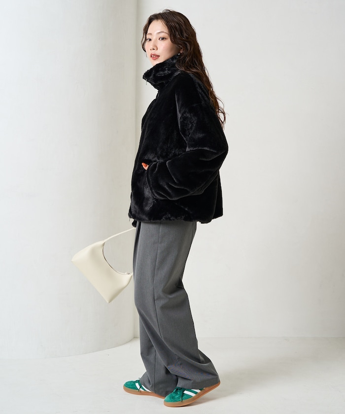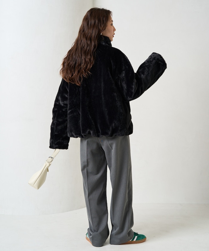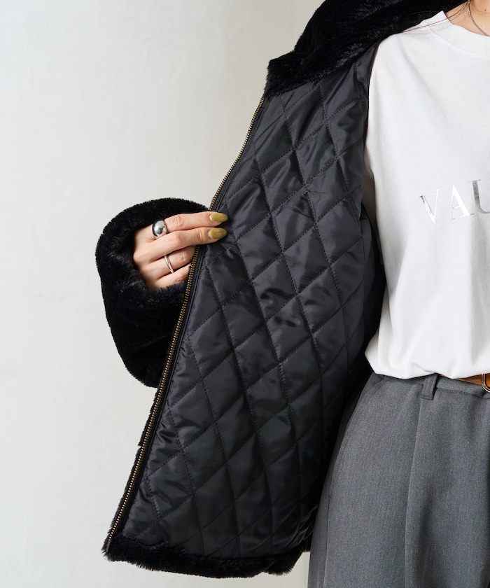 스탠드 칼라 디자인이며 안감은 퀼팅 디테일입니다.