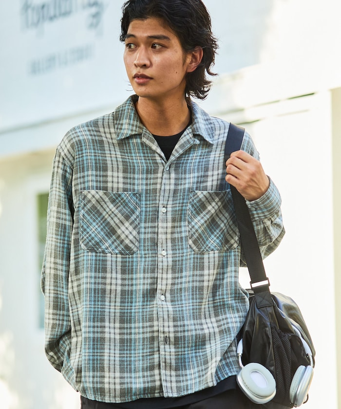 클래식한 체크 셔츠에 브리치 워싱 포인트를 더한 셔츠. 자연스럽게 떨어지는 루즈핏 실루엣입니다.