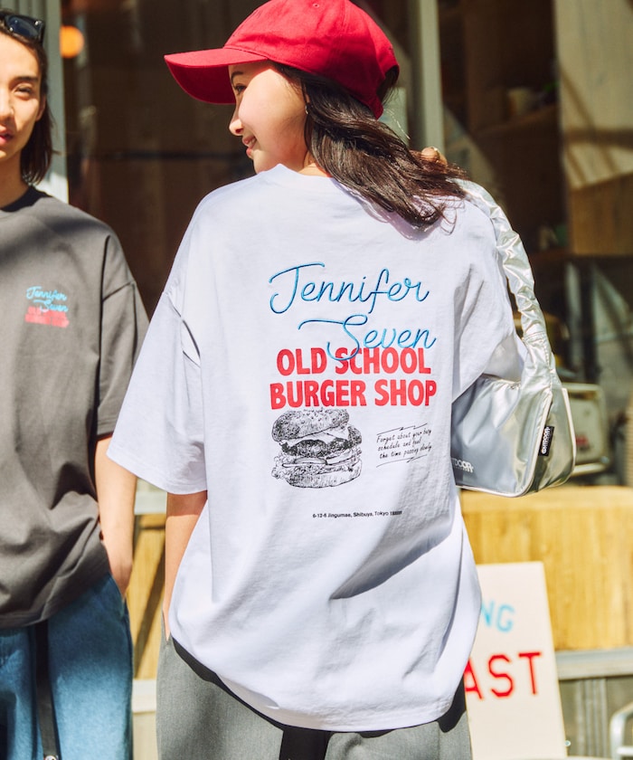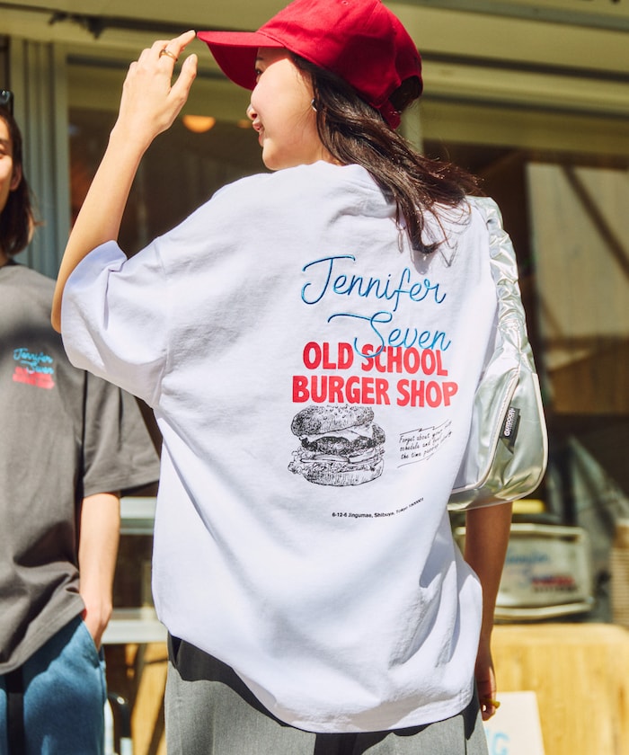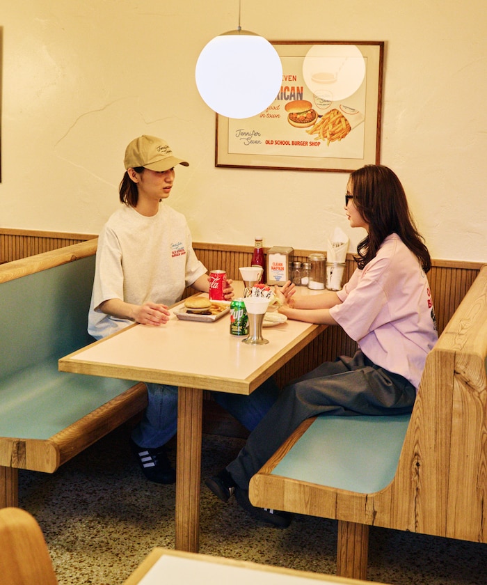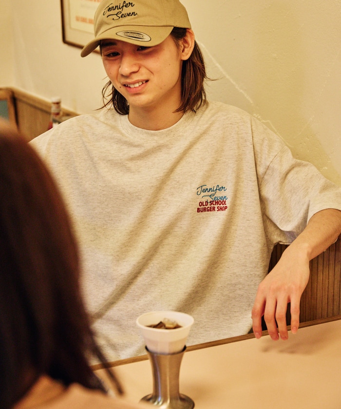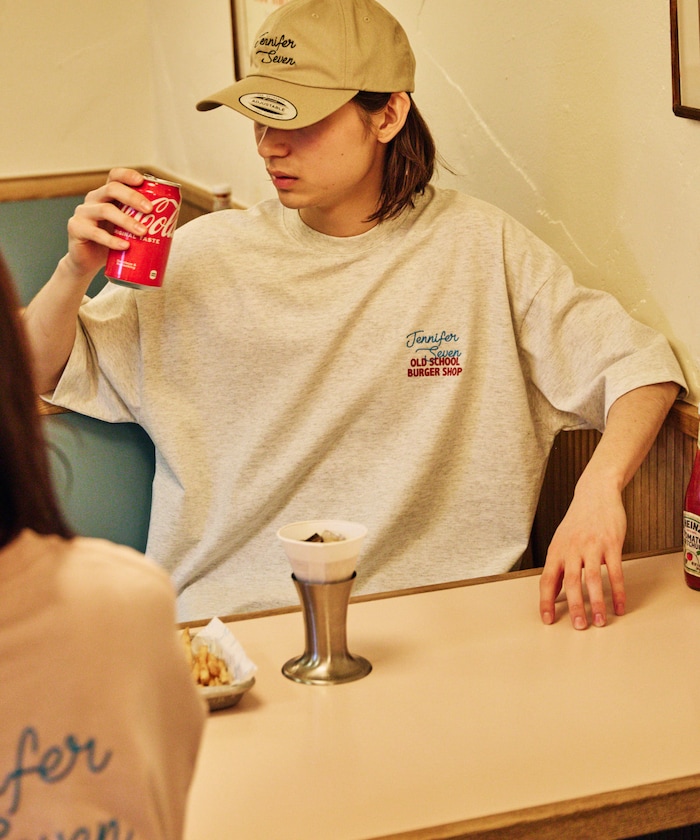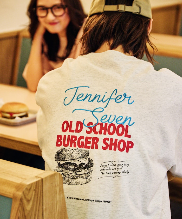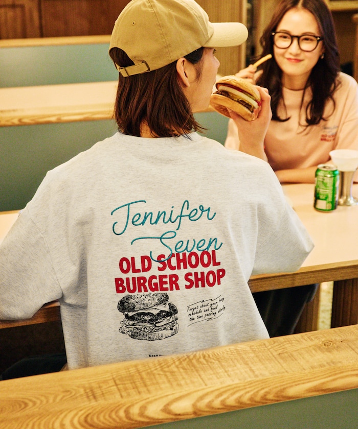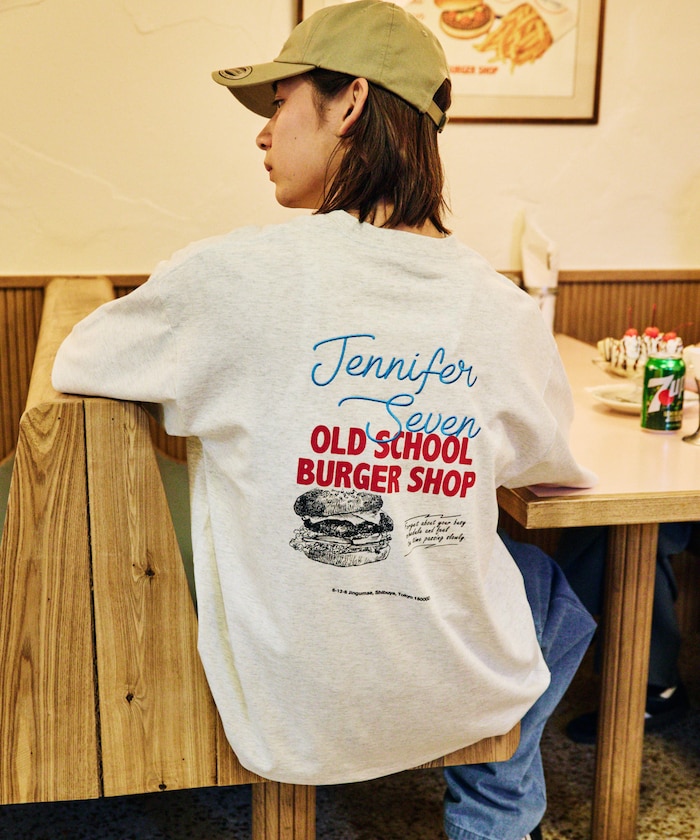 미국 로드사이드 다이너와 학생식당 분위기를 떠올리게 하는 제너럴스토어 겸용 버거숍과의 콜라보 티.