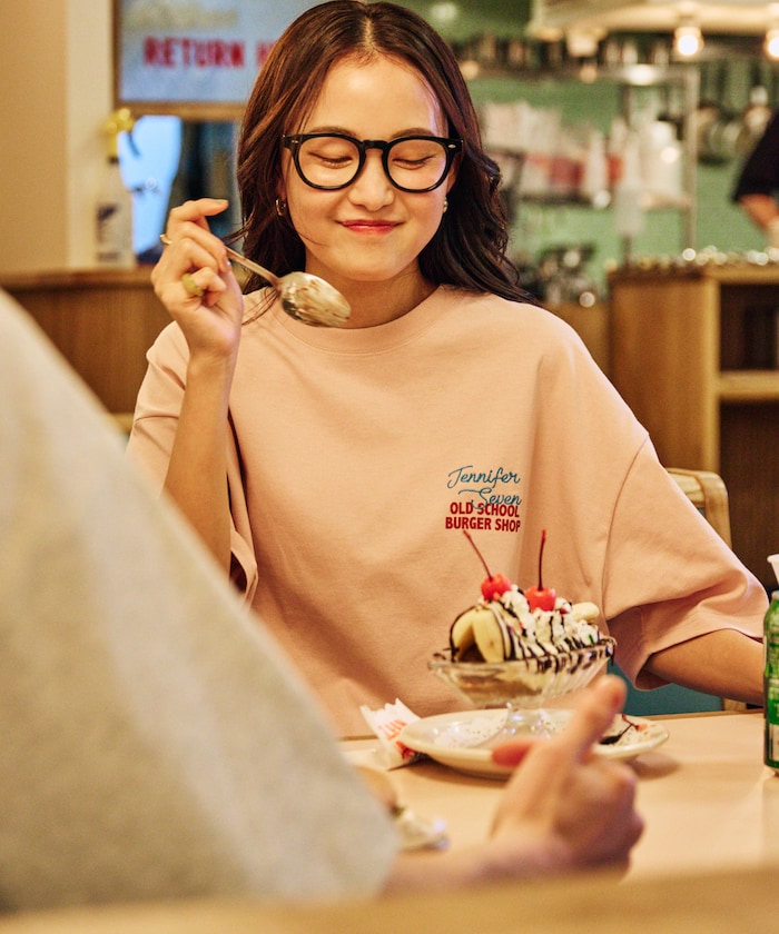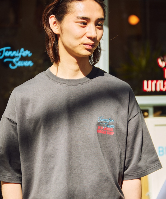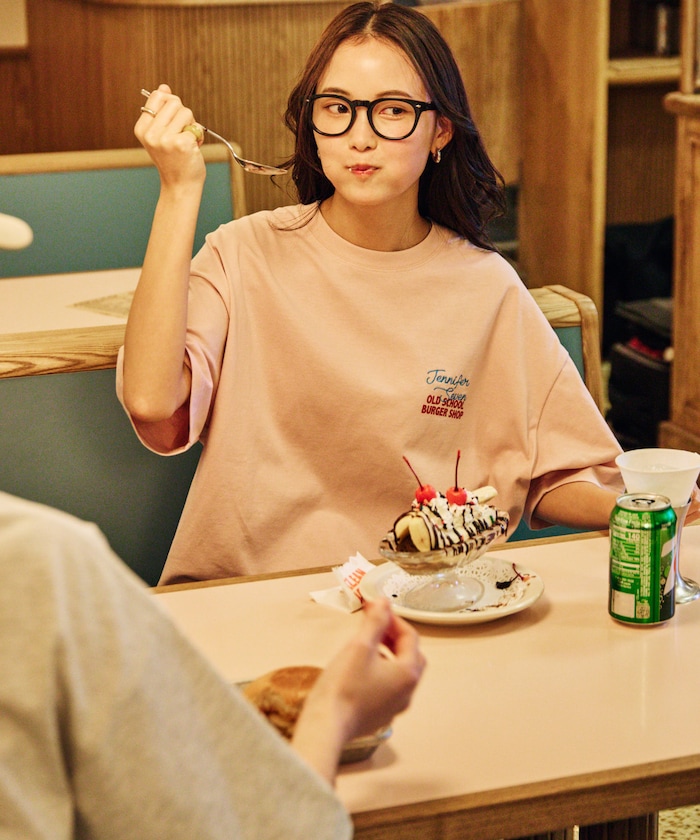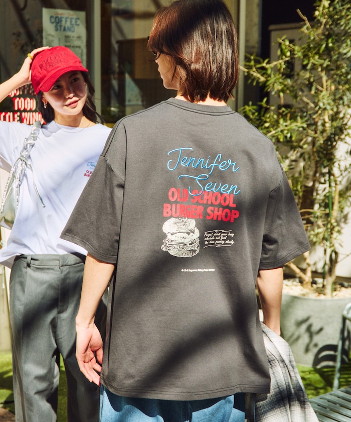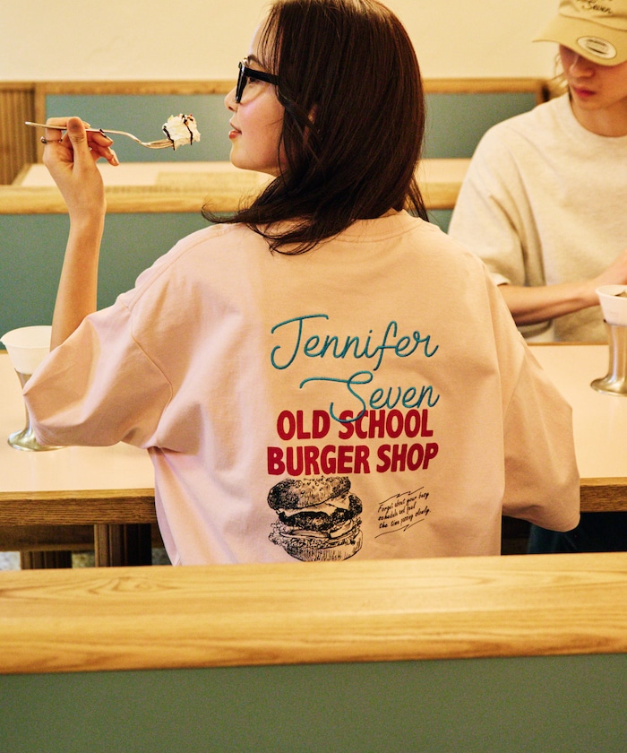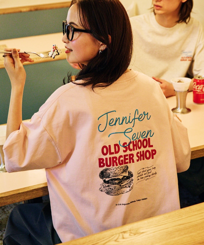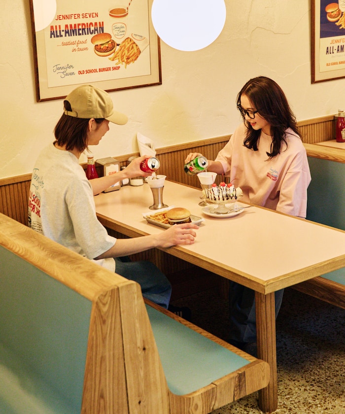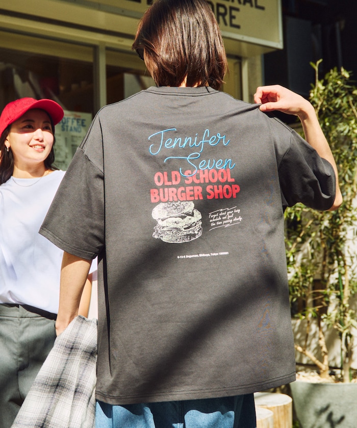 미국 로드사이드 다이너와 학생식당 분위기를 떠올리게 하는 제너럴스토어 겸용 버거숍과의 콜라보 티.