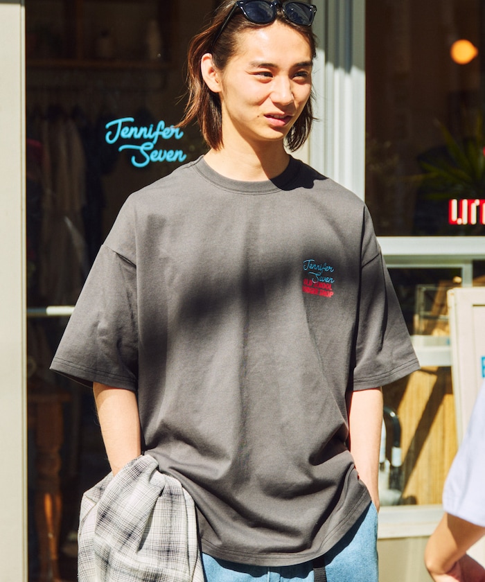 뒤면에는 스토어 사인을 재구성한 그래픽 프린트, 앞면에는 심플한 포인트 디자인입니다.