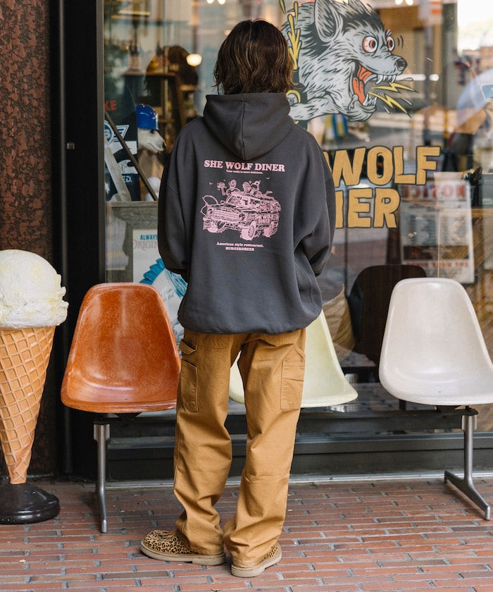 도쿄 시부야의 인기 아메리칸 다이너 SHE WOLF DINER 와의 특별 콜라보 후디