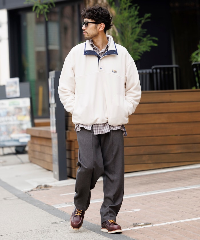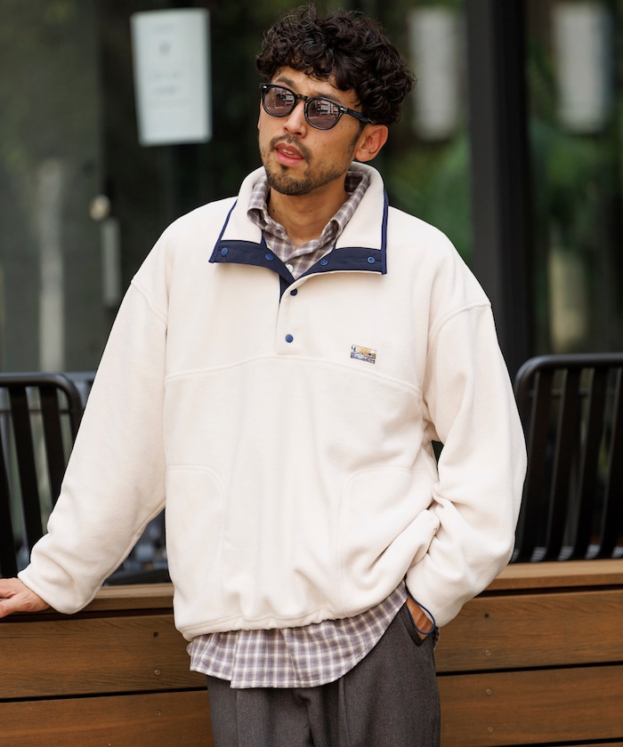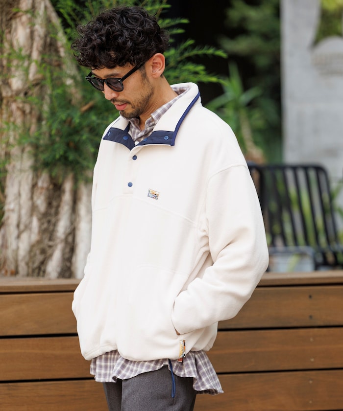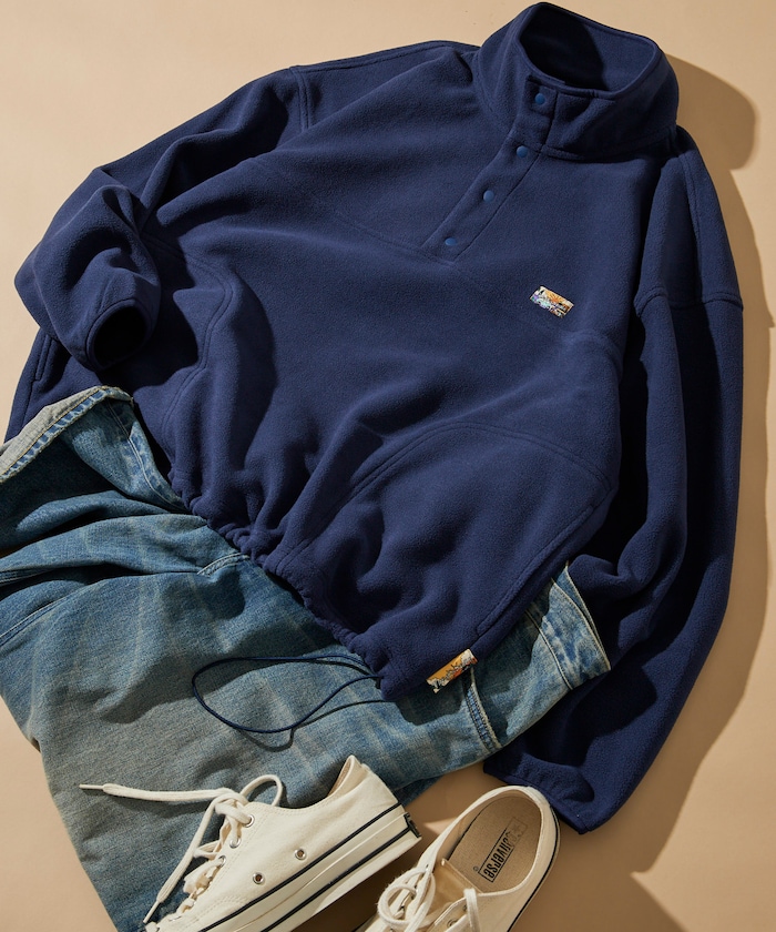 스탠드넥, 스냅버튼 디자인의 플리스 풀오버.