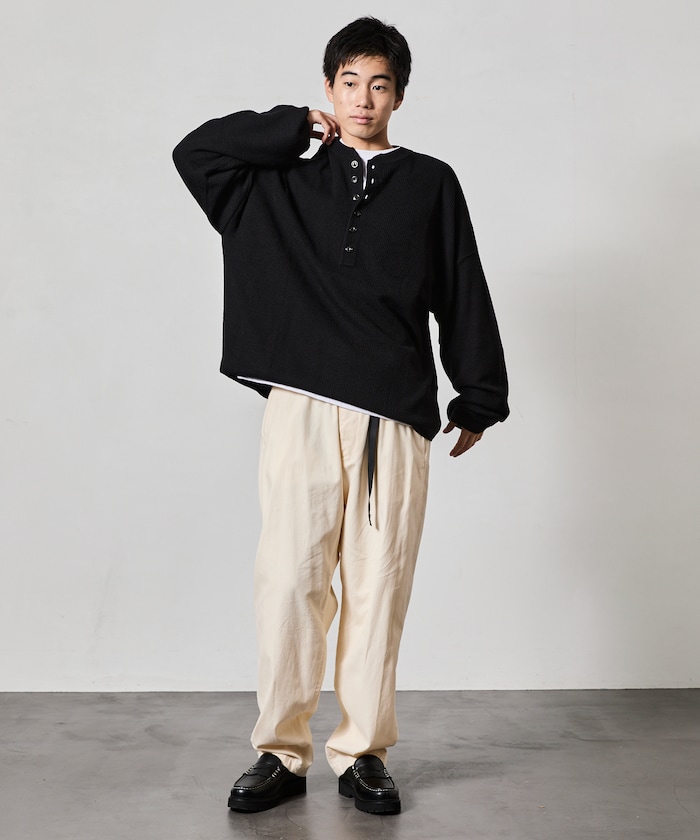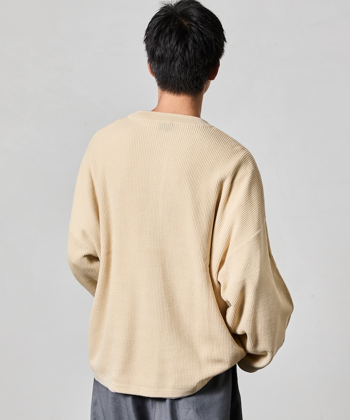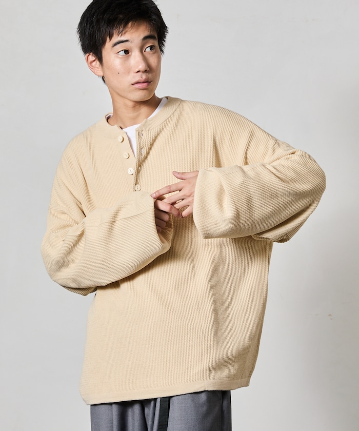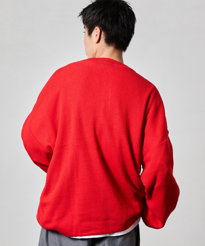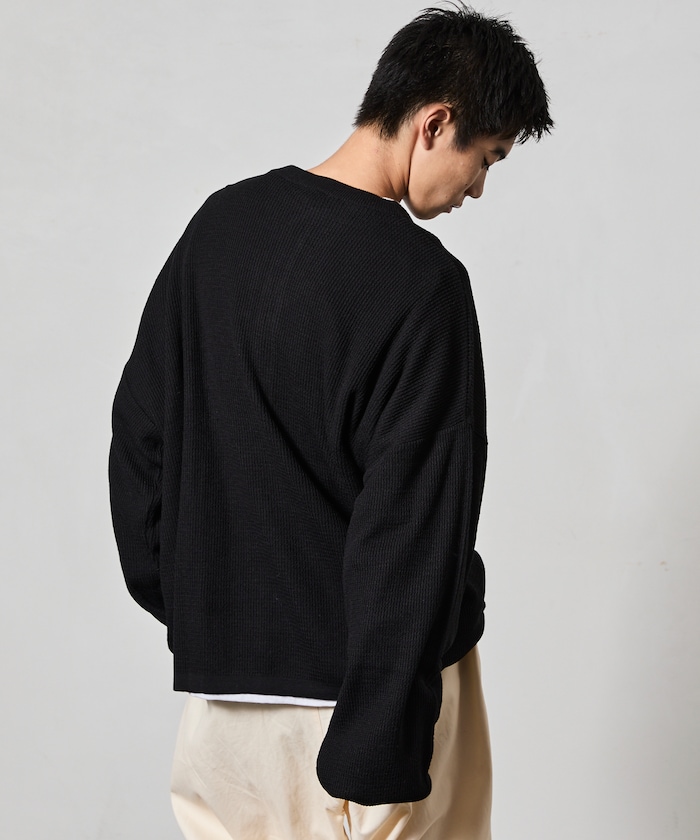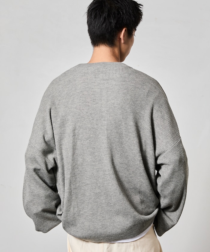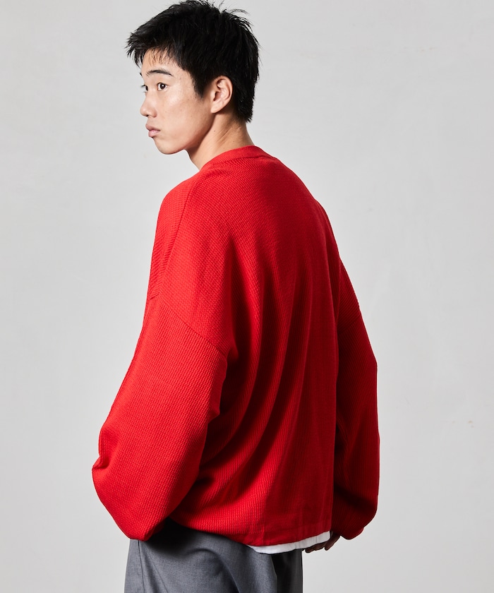 부드러운 아크릴 베이스 소재를 사용하며 적당한 루즈핏, 드롭숄더 디자인입니다.