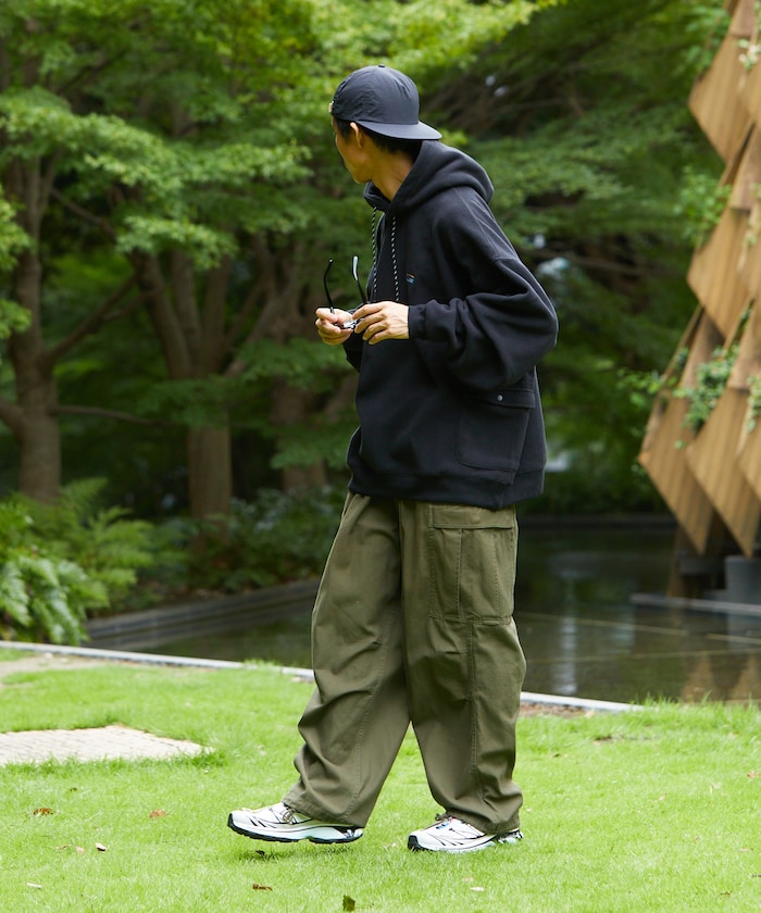 양쪽 사이드에 포켓으로 실용성과 디자인성을 높였습니다. 밑단 드로우코드가 있어 실루엣 조절이 가능합니다.