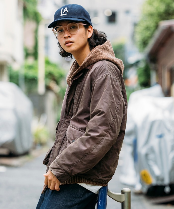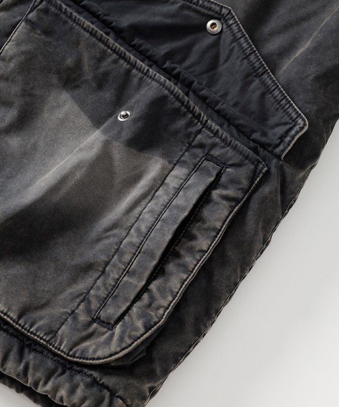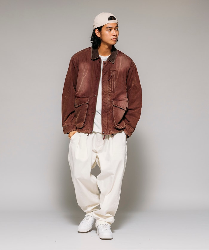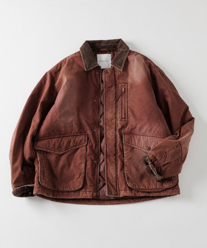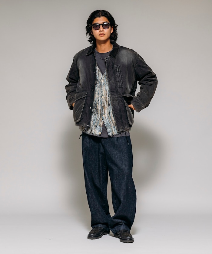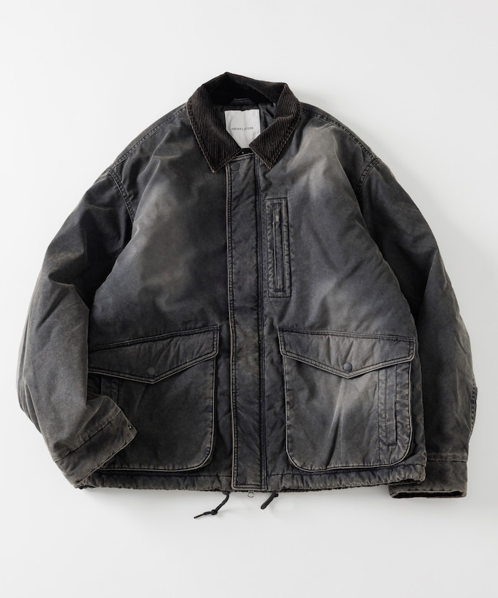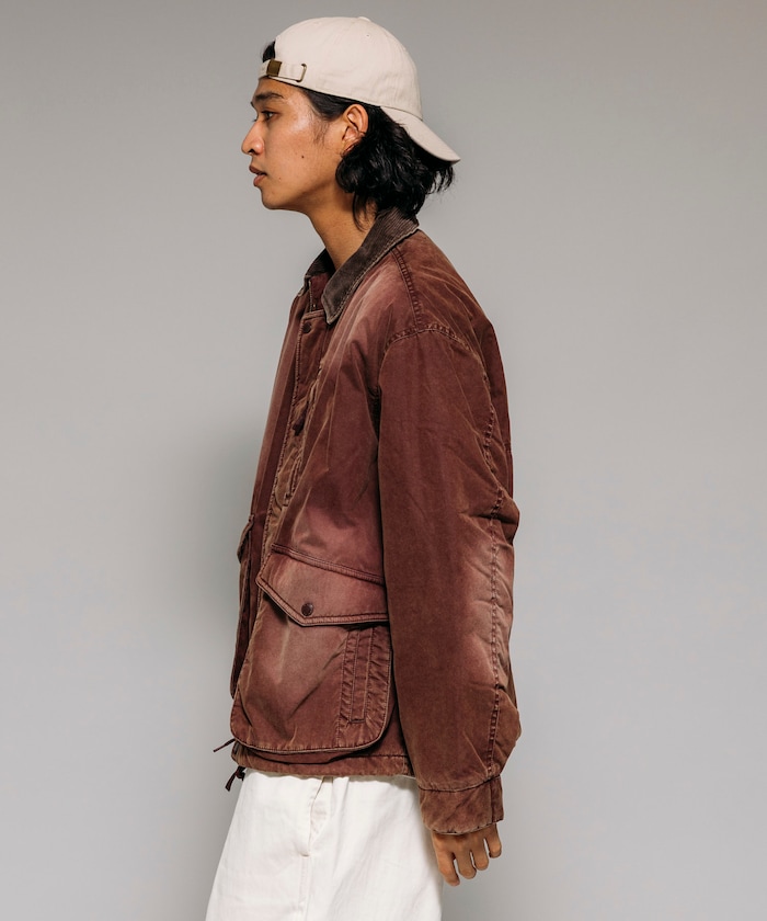카라 부분을 코듀로이 원단으로 배색한 코튼 나일론 혼방의 블루종. 자연스러운 워싱 가공으로 빈티지한 멋을 살린 디자인입니다. 피싱 재킷에서 착안한 디테일로, 양쪽 사이드에는 여유 있는 플랩포켓과 슬래시 포켓을, 가슴에는 지퍼 포켓이 있습니다. 어깨선이 내려간 드롭숄더와 살짝 짧은 박시 실루엣입니다.