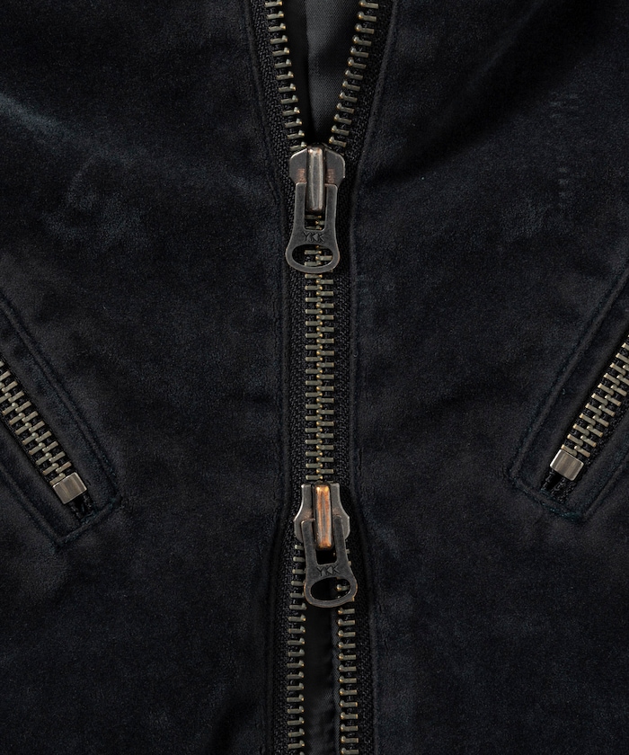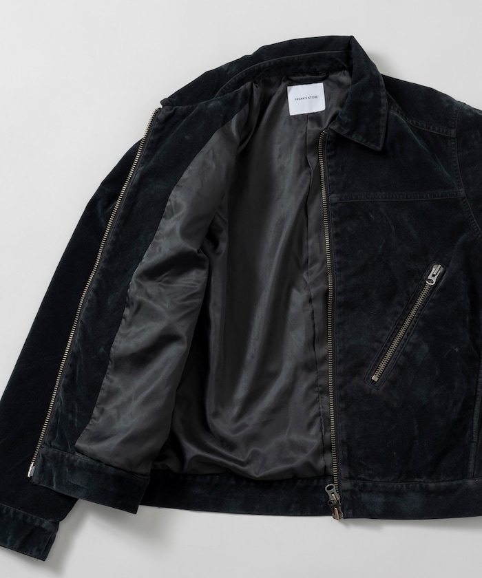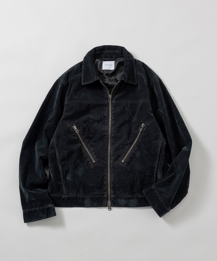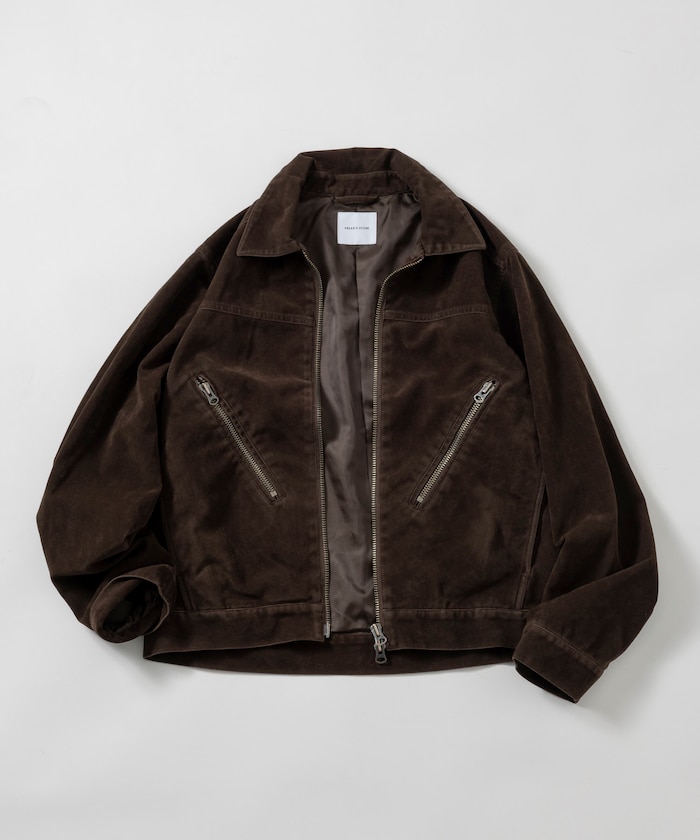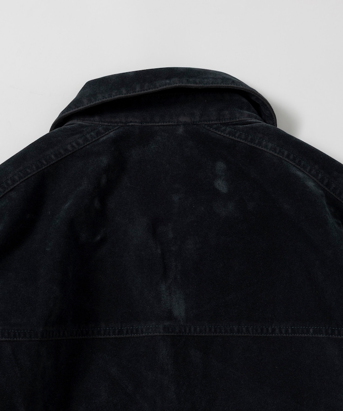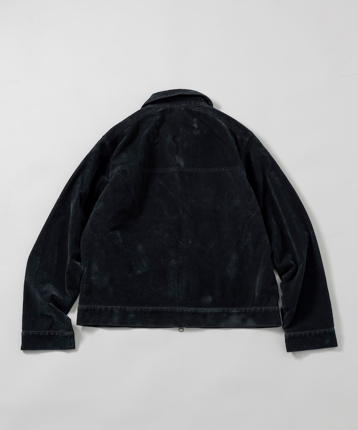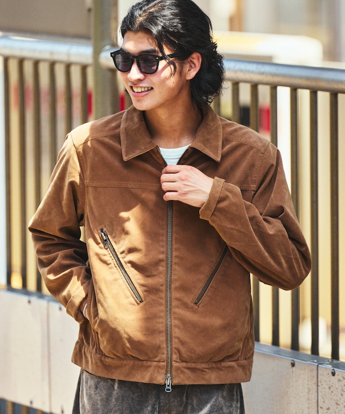 인조 스웨이드 소재에 위시 가공을 더한 재킷.