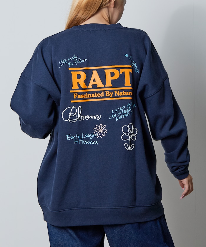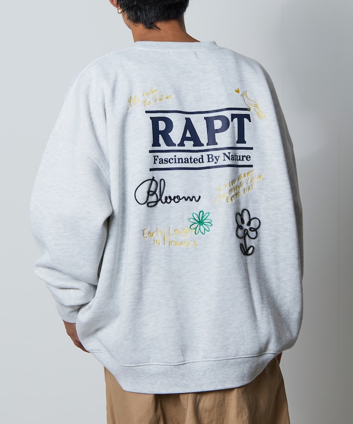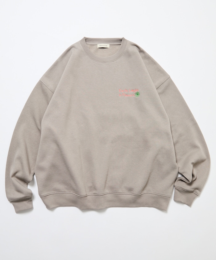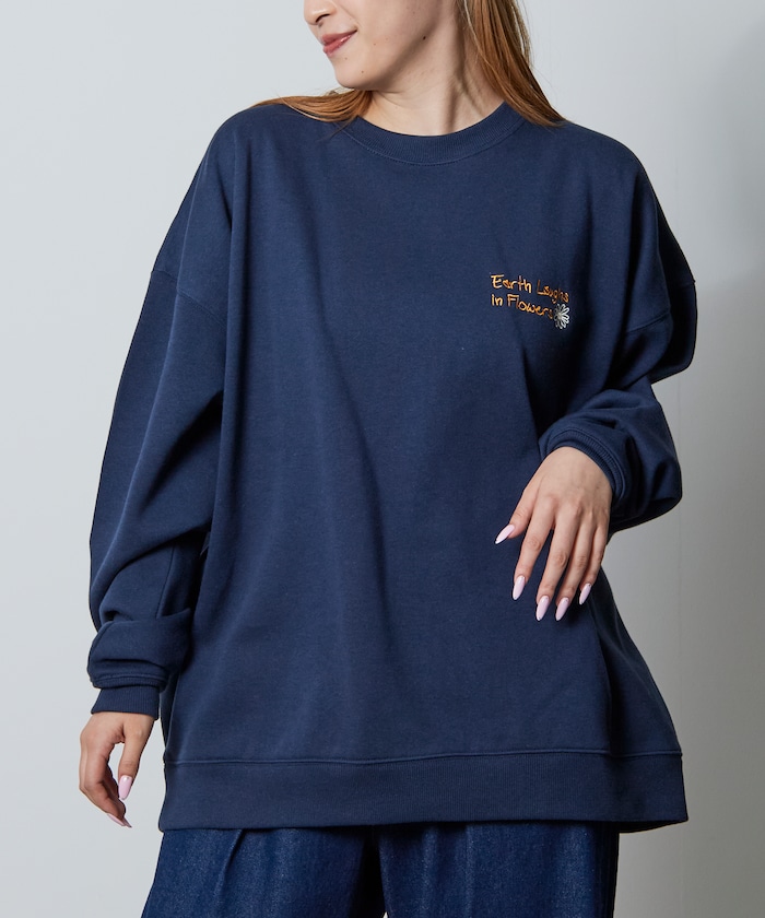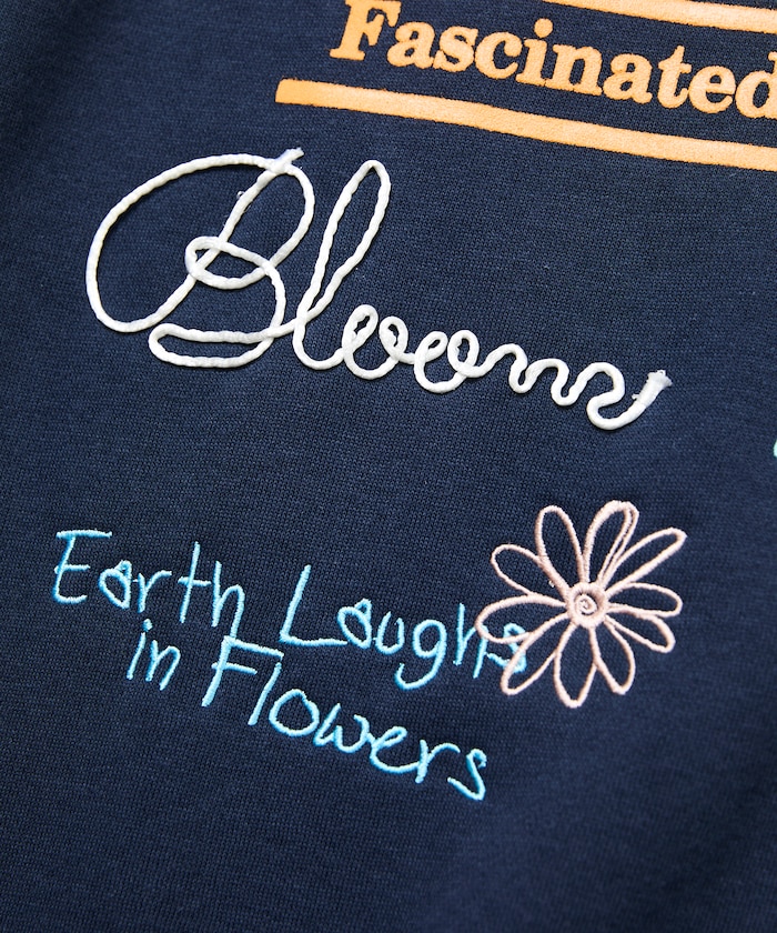 프린트, 핸드스티치 느낌의 자수, 하나의 로프를 사용한 디자인의 스웨트 티