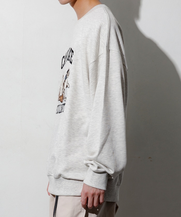 컬러마다 다른 자수가 있는 디자인의 스웨트 티. 여유 있는 빅 실루엣입니다.
