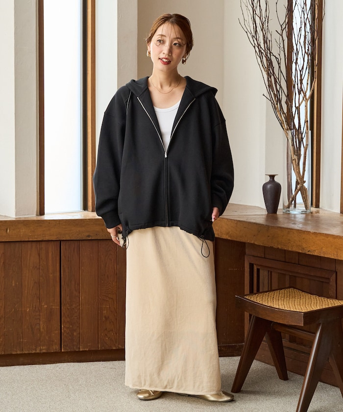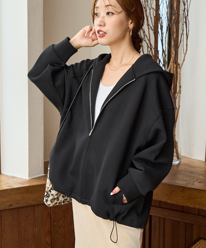 탄탄한 소재와 심플한 디자인의 스웨트 후디. 여유있는 품으로 체형을 커버할 수 있습니다.