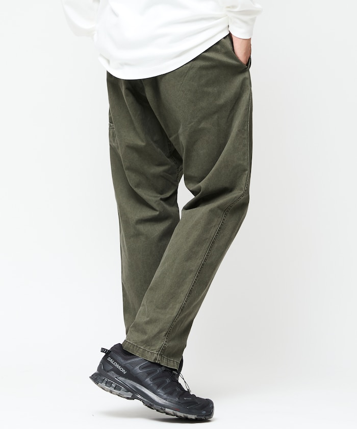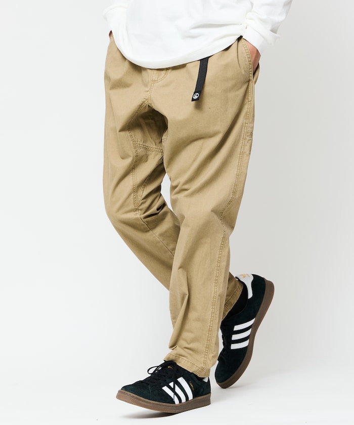 매 시즌 인기 있는 클라이밍 팬츠에 워싱 가공을 더한 새로운 모델입니다. 밑단으로 갈수록 좁아지는 베이직한 슬림 테이퍼드 실루엣입니다. 허리는 조절 가능한 웨빙 벨트 디테일 포인트가 있습니다.