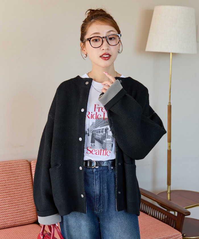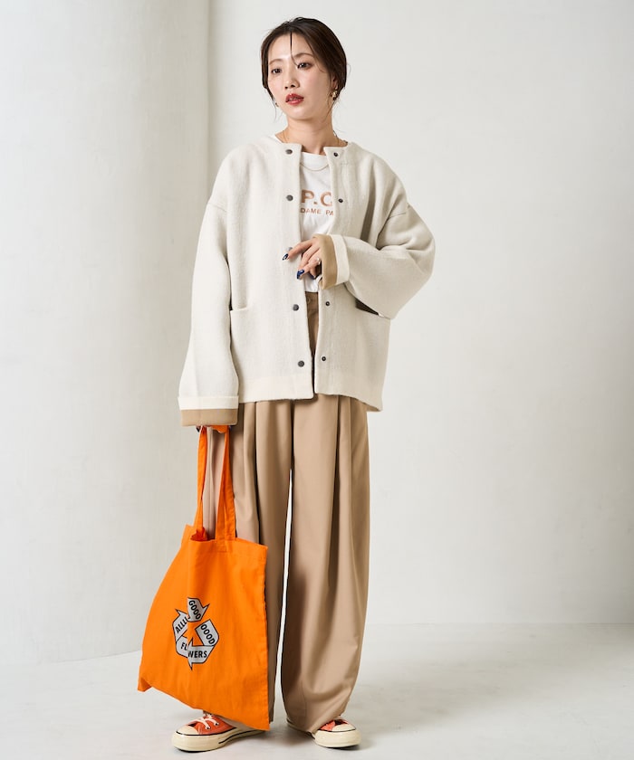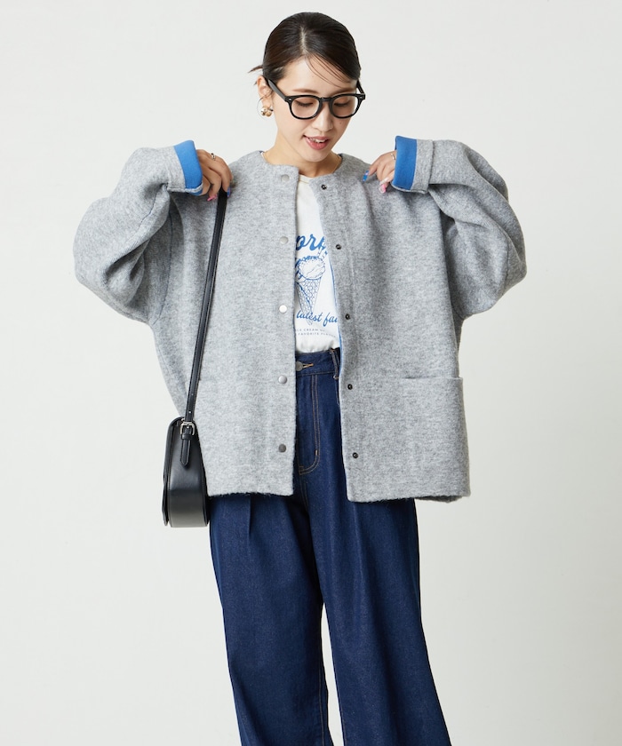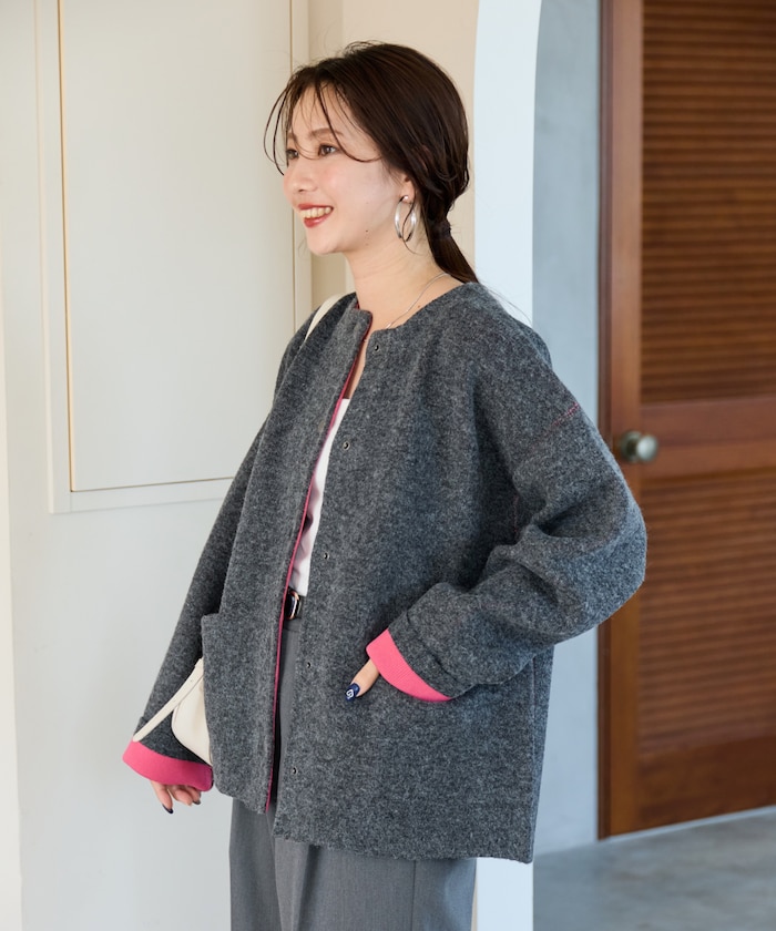 울이 혼방된 소재로 따뜻하고 겨울까지 입을 수 있습니다. 적당히 여유 있는 빅 실루엣입니다.