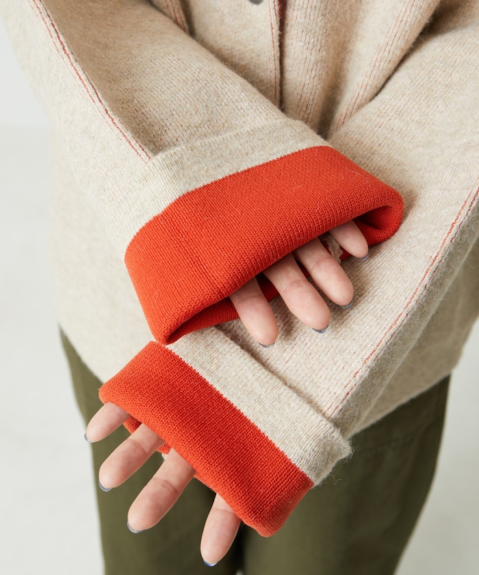 안쪽 배색 컬러가 신선하고 멋스럽게 연출되는 니트 가디건