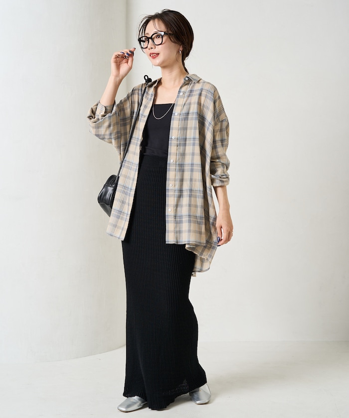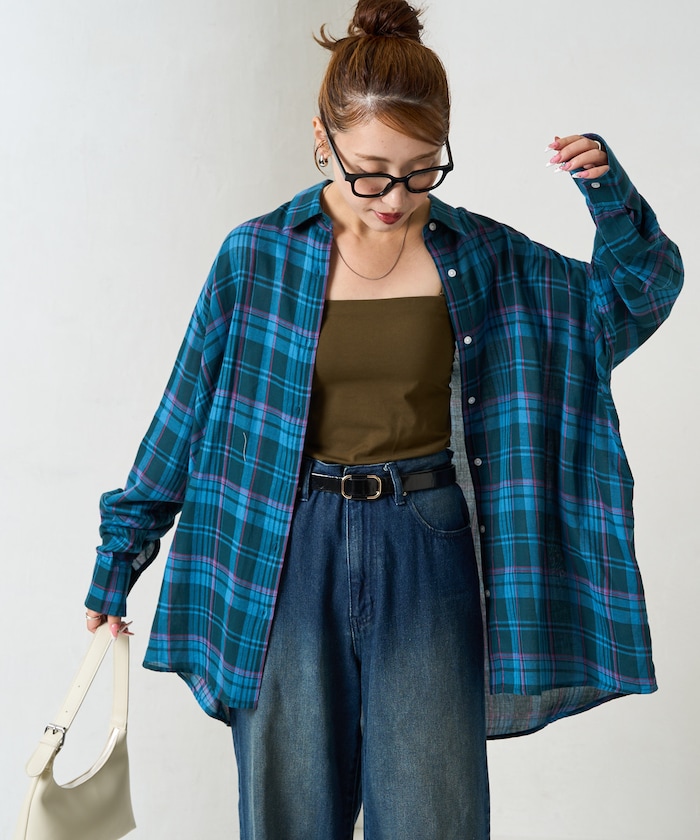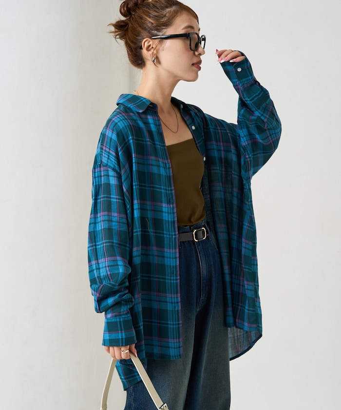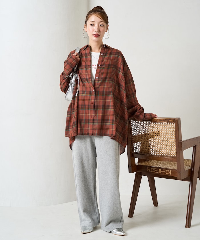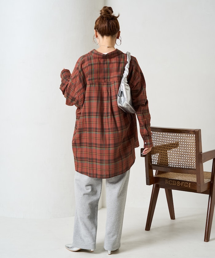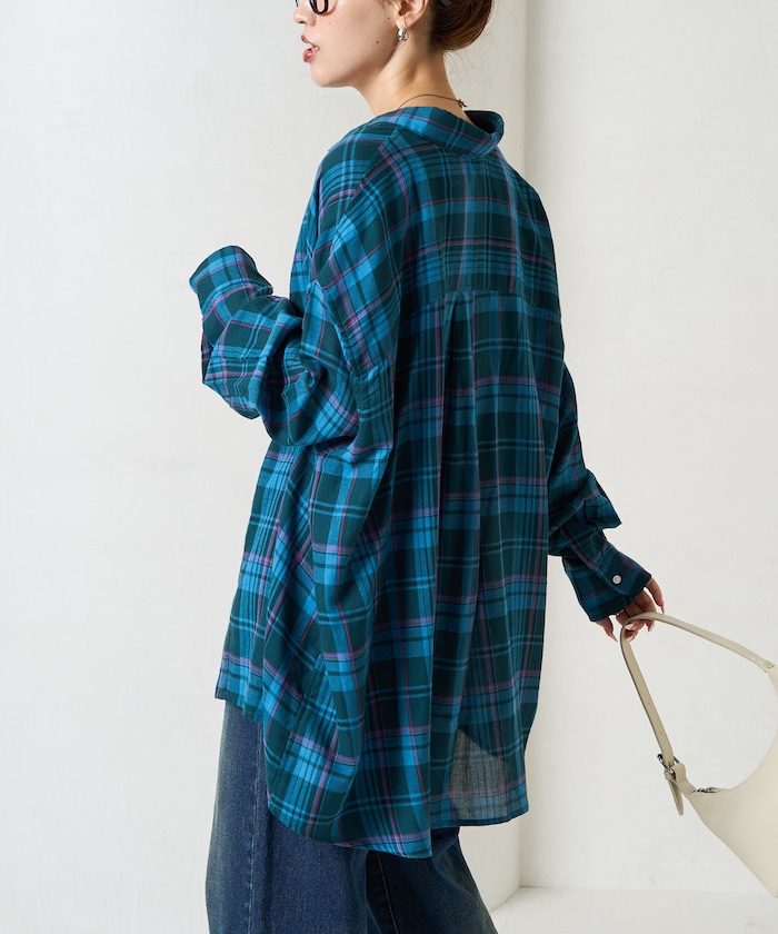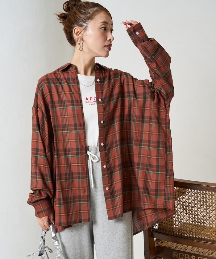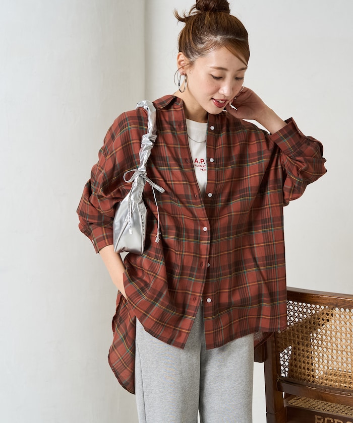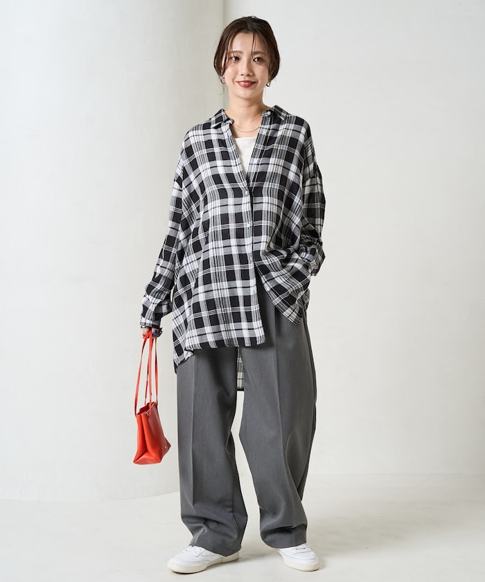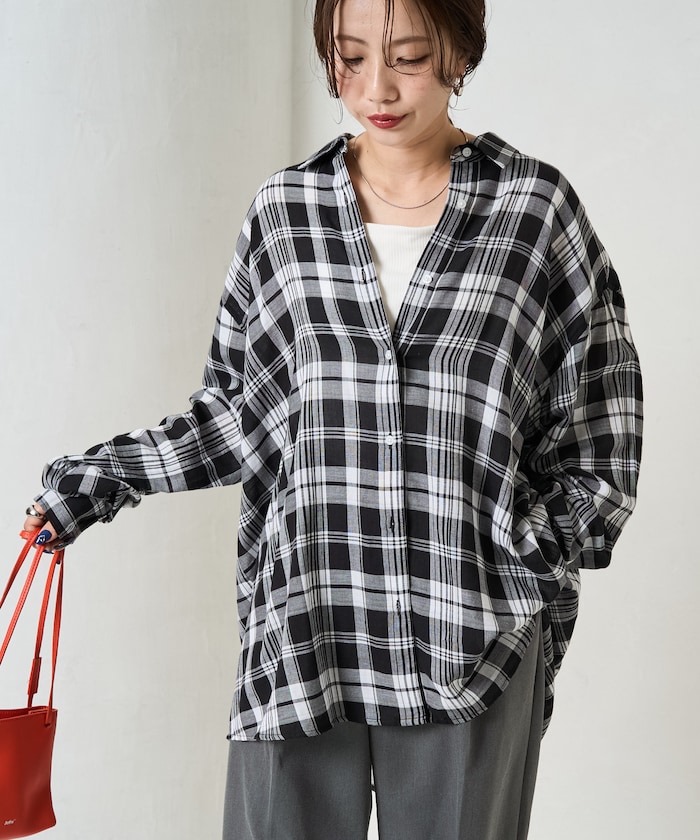 프릭스스토어 여성 빅 실루엣 체크 볼륨 셔츠