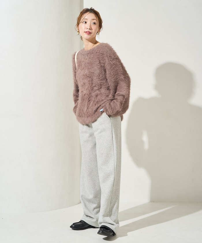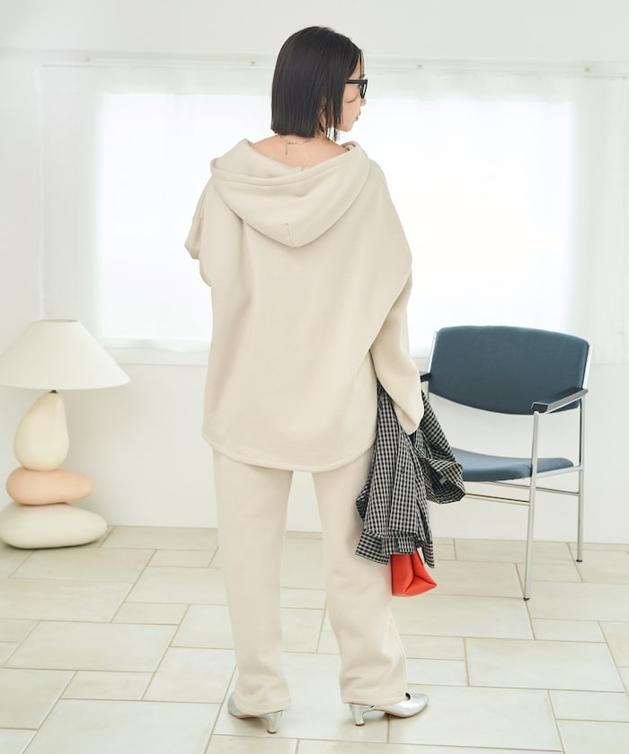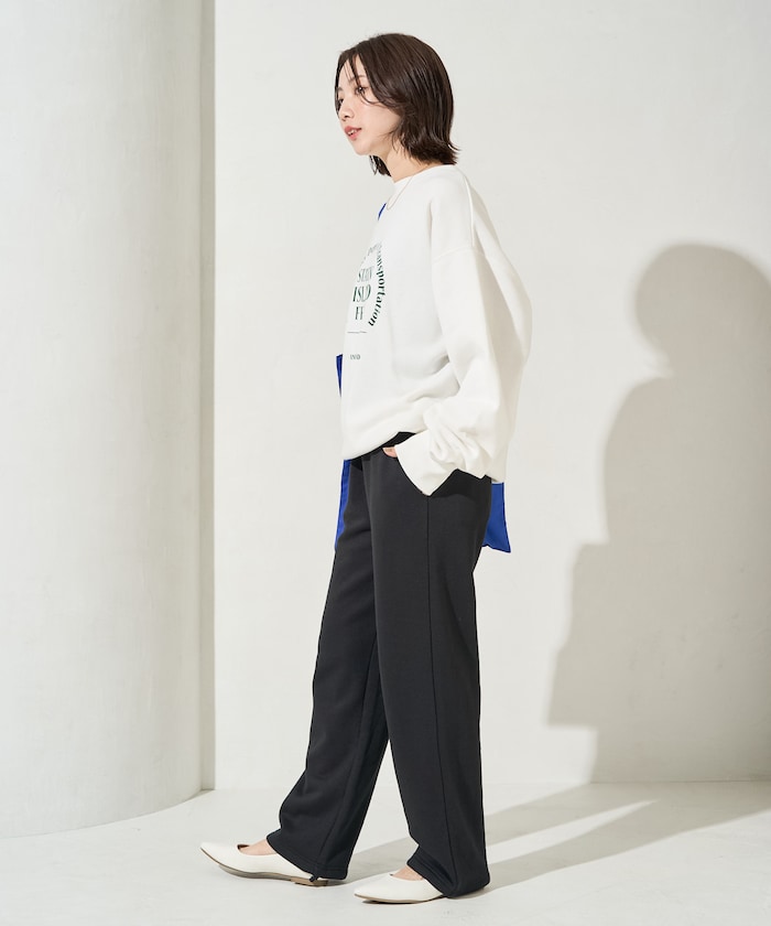 포근하면서도 쫀득한 텍스처가 특징인 폰치 소재 팬츠입니다. 안감은 기모 처리되어 있으며 허리 밴딩과 스트링이 있어 핏을 조절할 수 있습니다.