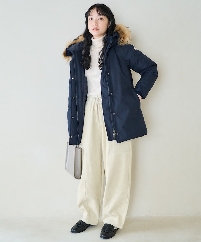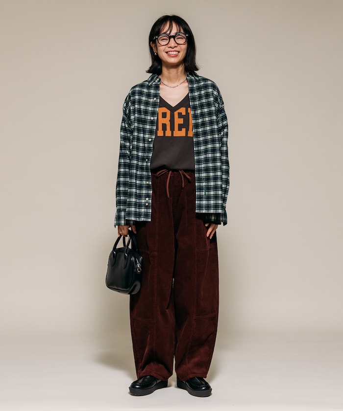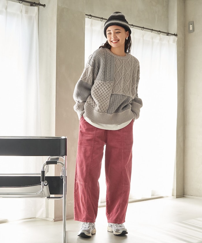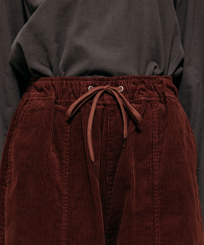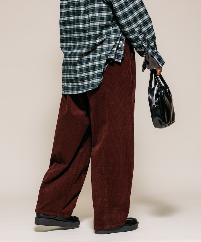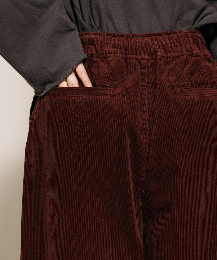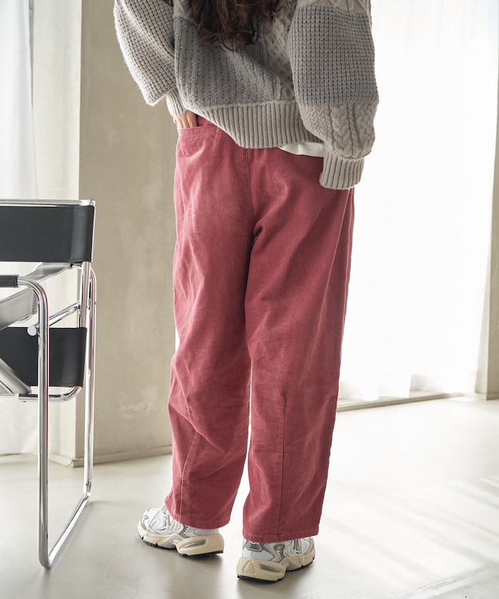 트렌디한 곡선 실루엣이 돋보이는 팬츠입니다. 허리 밴딩으로 편안한 착용감을 제공합니다.