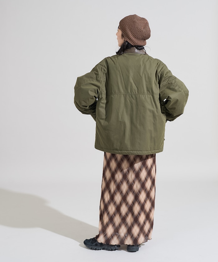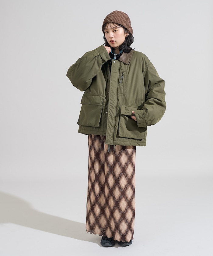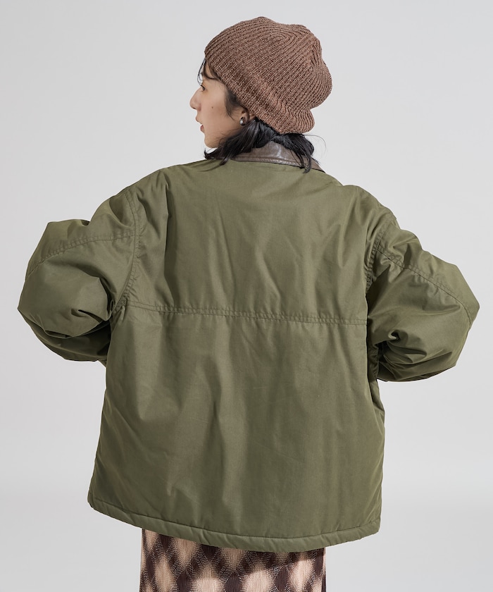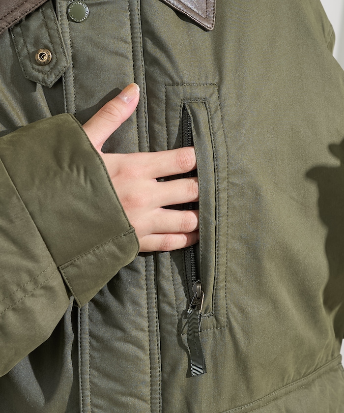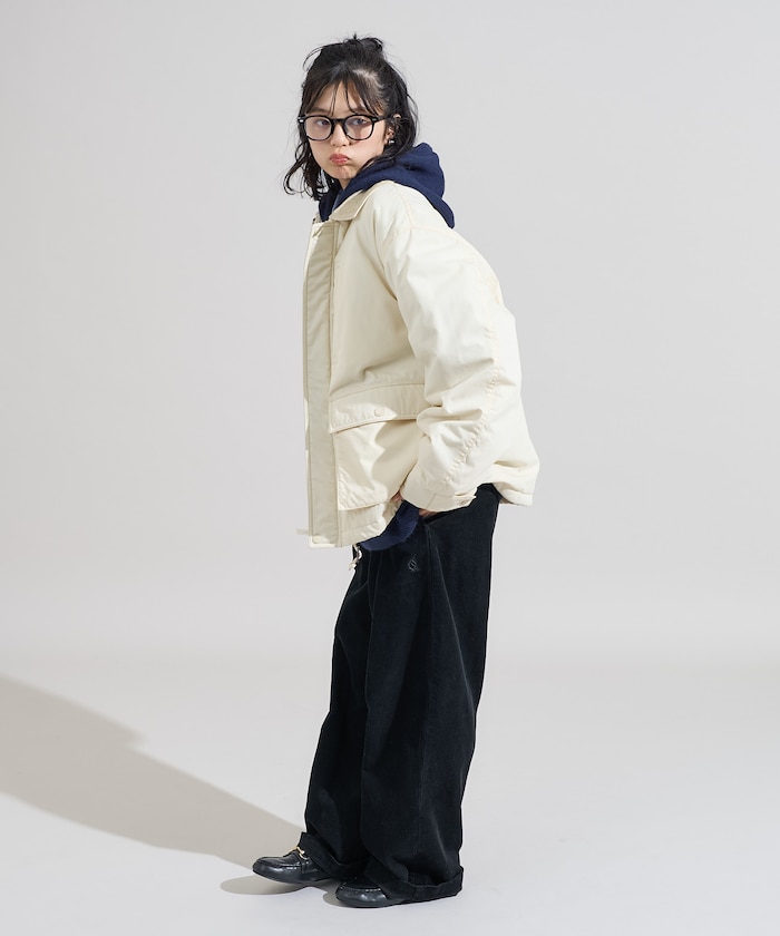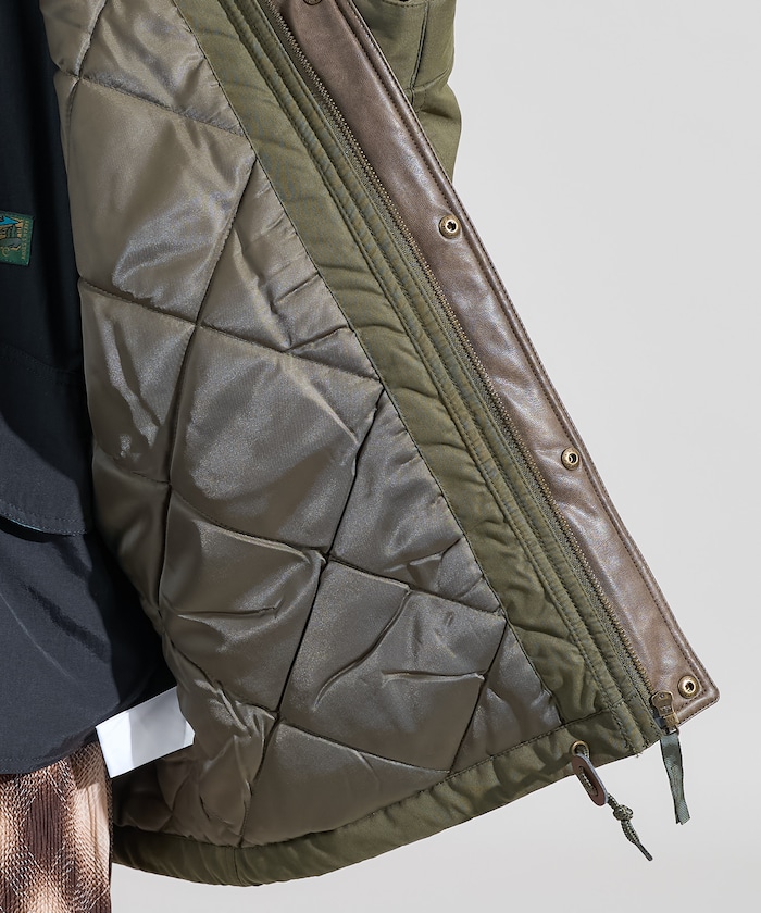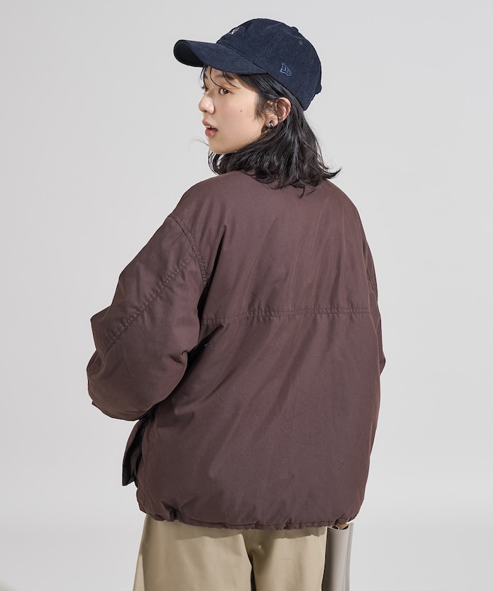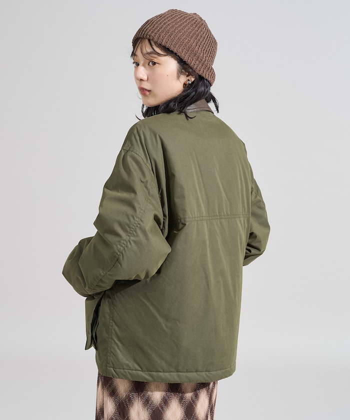 성가죽 배색 카라와 빅 플랩 포켓이 돋보이는 디자인의 패딩 점퍼. 밑단에 드로우스트링이 있어 실루엣을 변화할 수 있으며 카라의 친스트랩과 소매의 버튼 디테일이 있습니다. 오버사이즈 실루엣