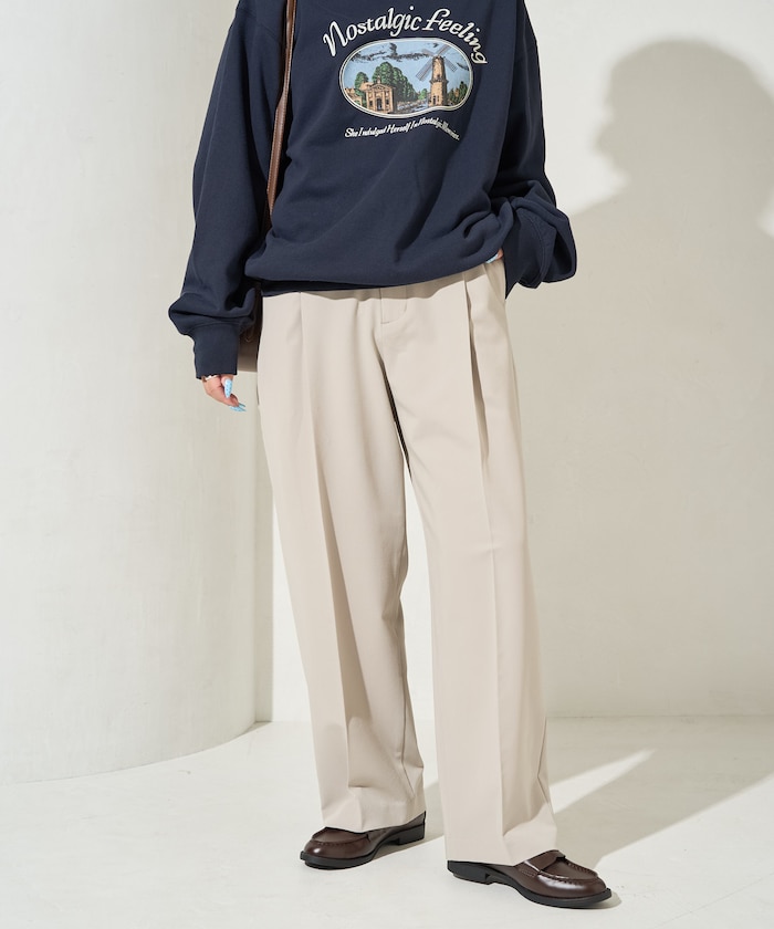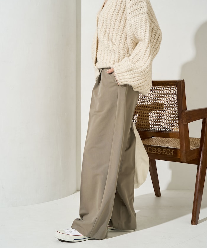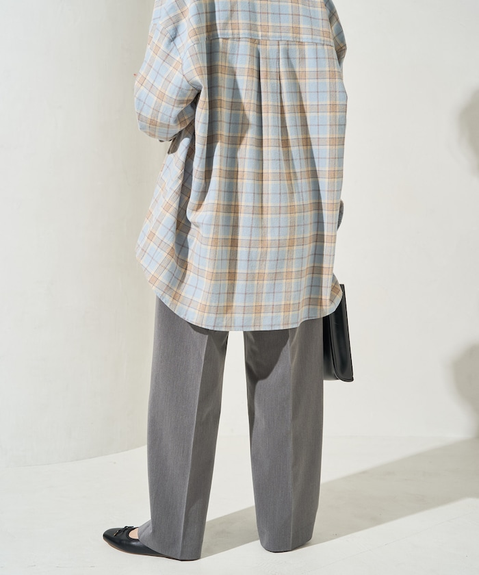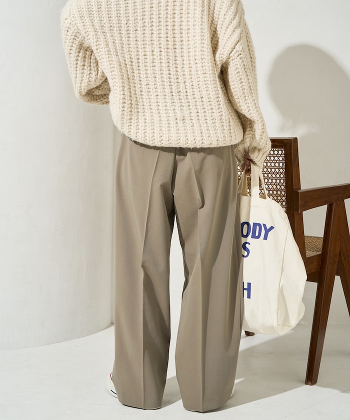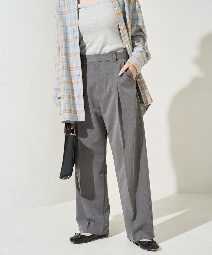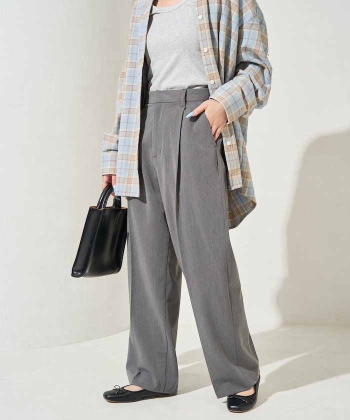 오피스룩부터 데일리룩까지 폭넓게 활용 가능한 슬랙스 디자인의 팬츠. 적당한 여유감이 있으면서도 깔끔한 라인입니다. 허리에 턱 디테일이 있어 자연스러운 입체감이 있으며 스트레이트 실루엣으로 다리가 길어보입니다.