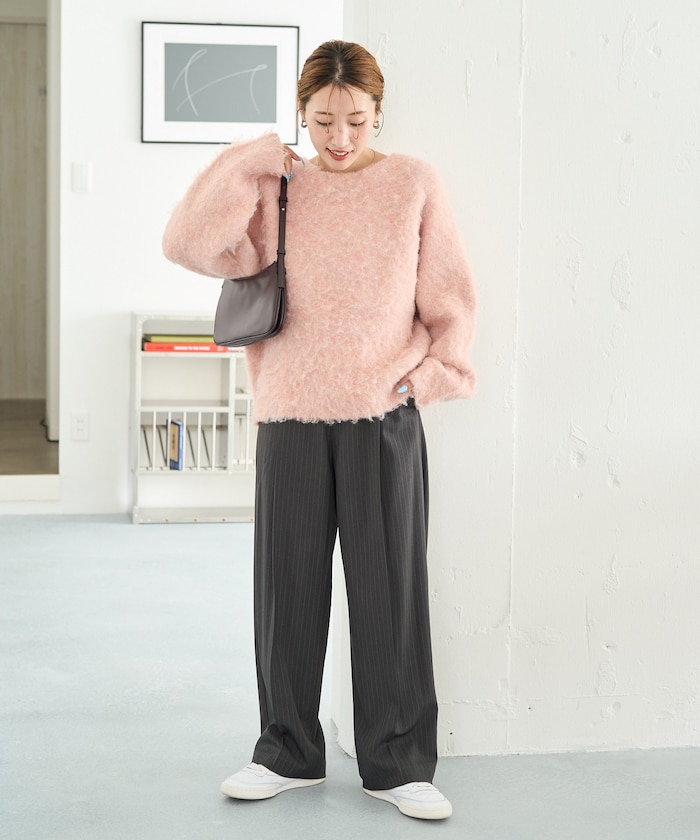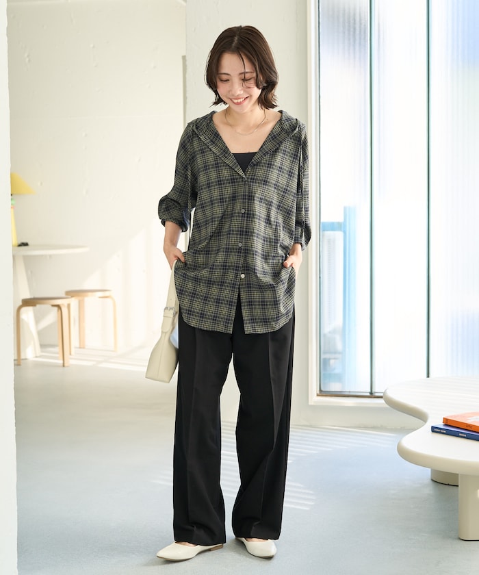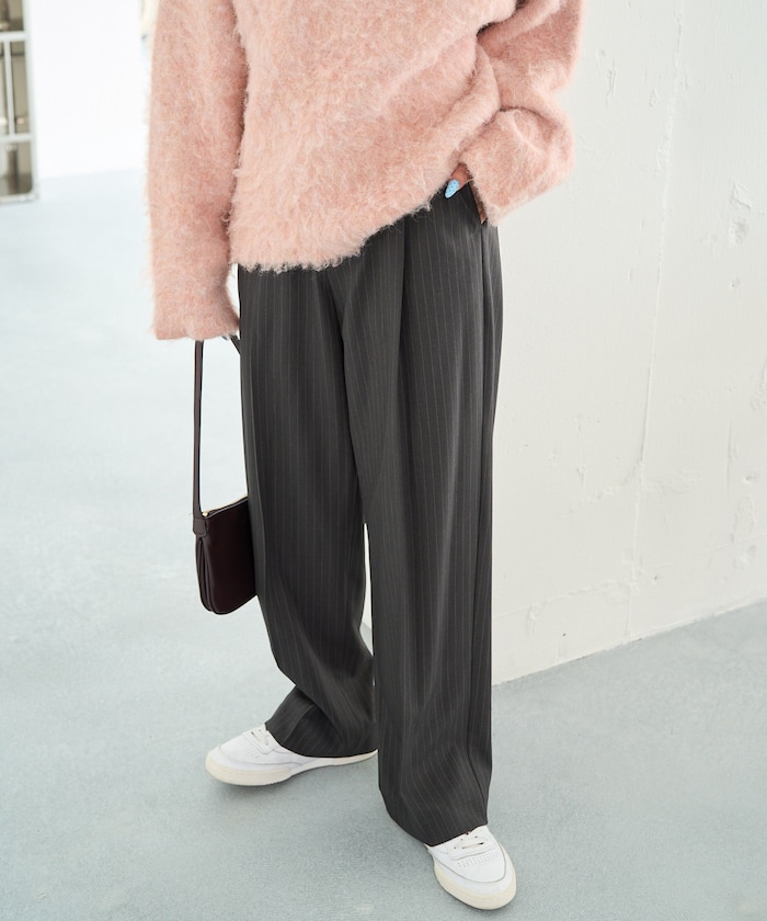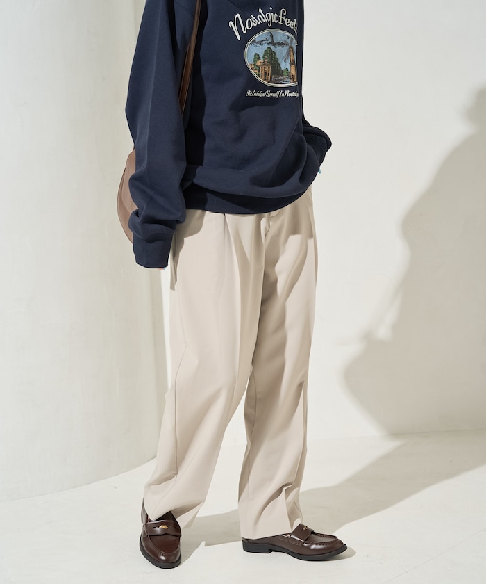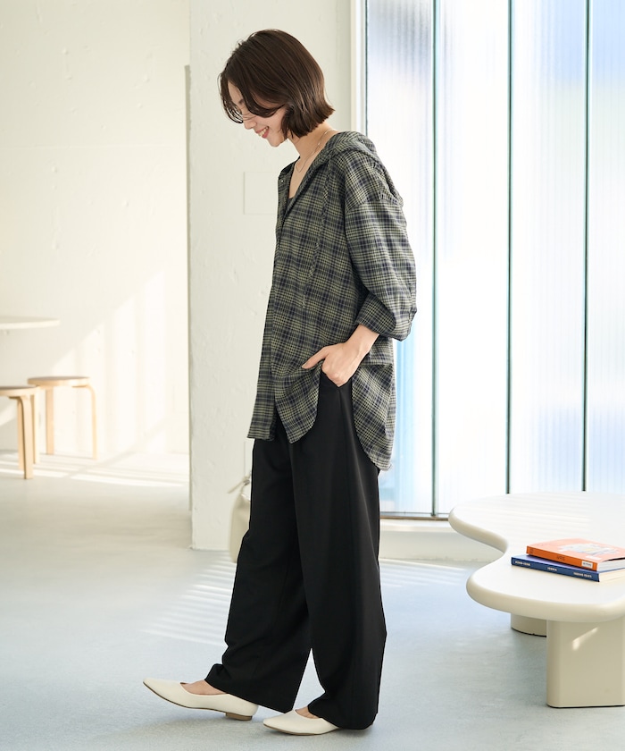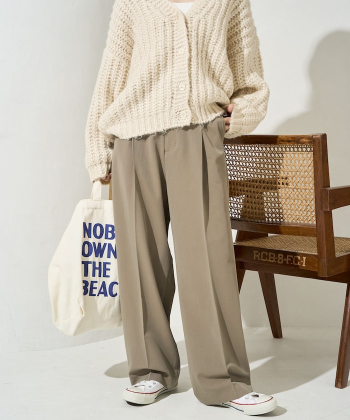 오피스룩부터 데일리룩까지 폭넓게 활용 가능한 슬랙스 디자인의 팬츠. 적당한 여유감이 있으면서도 깔끔한 라인입니다. 허리에 턱 디테일이 있어 자연스러운 입체감이 있으며 스트레이트 실루엣으로 다리가 길어보입니다.
