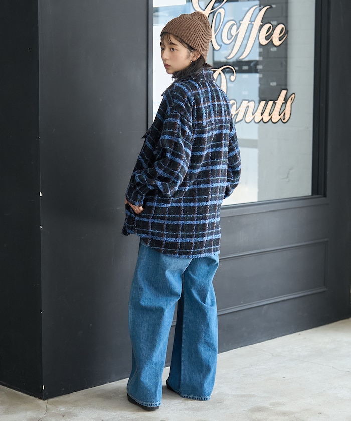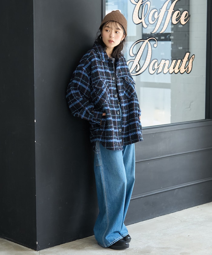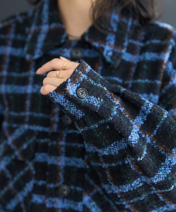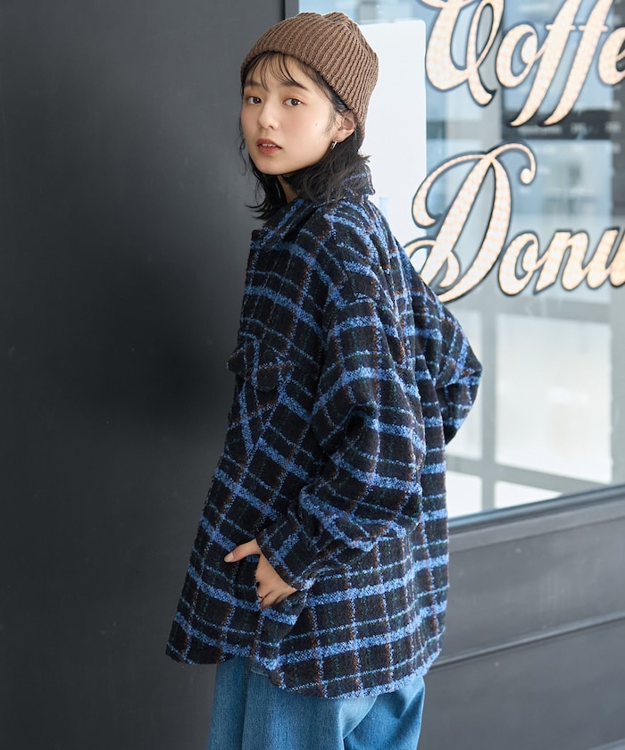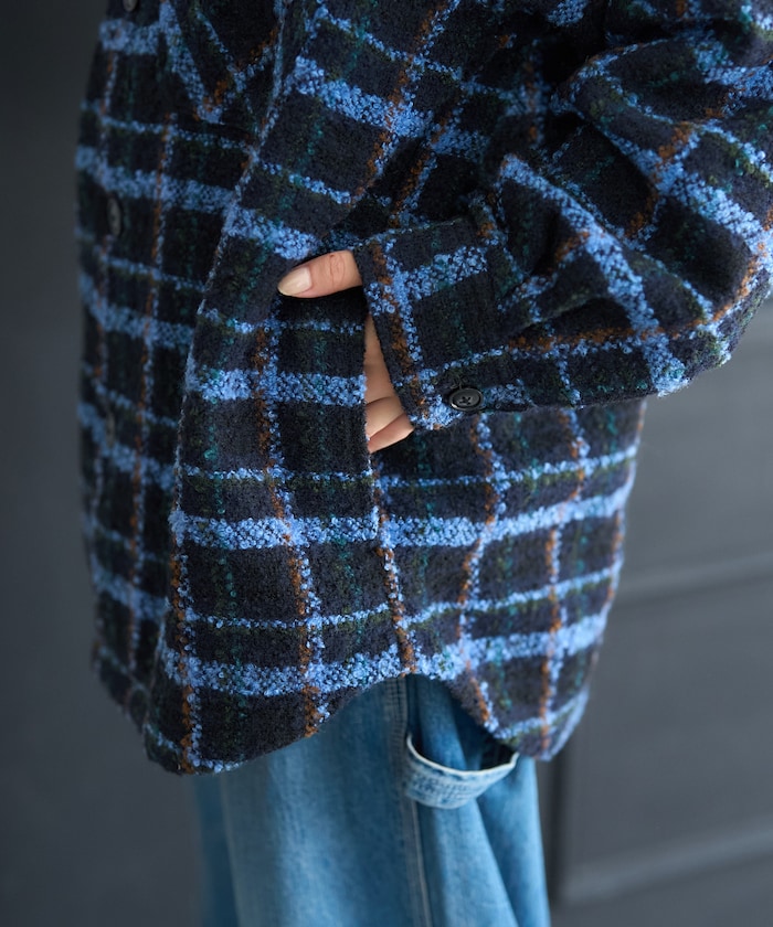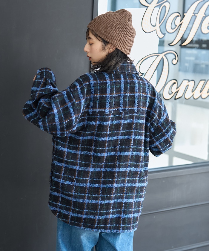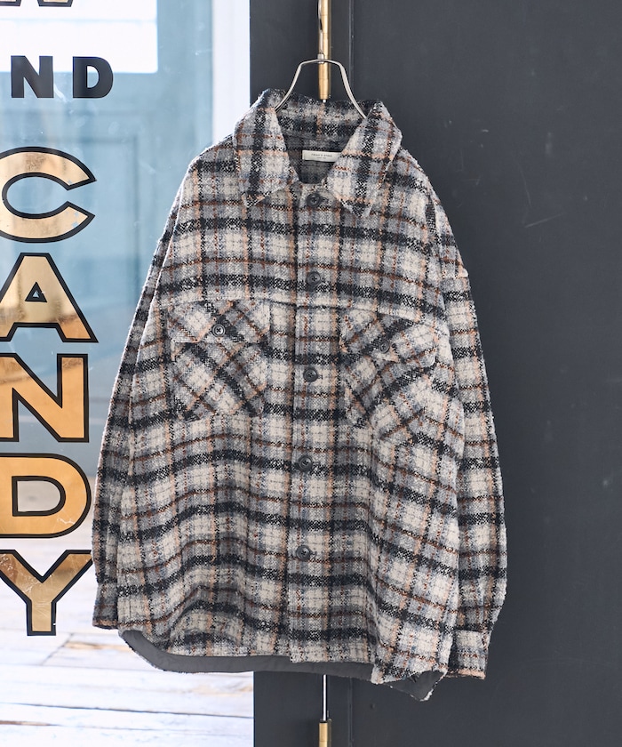 트위드 감각의 체크 패브릭을 사용하여 시선을 사로잡는 디자인의 셔츠 재킷. 적당한 두께감으로 봄부터 초겨울까지 입을 수 있습니다. 여유로운 오버사이즈 실루엣으로 자연스럽고 멋스러운 착용감입니다.