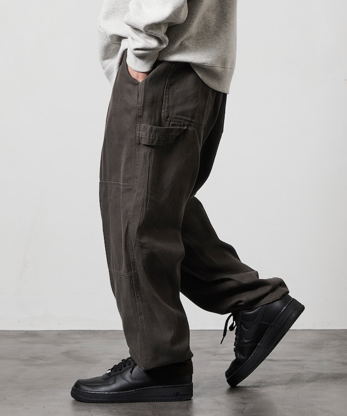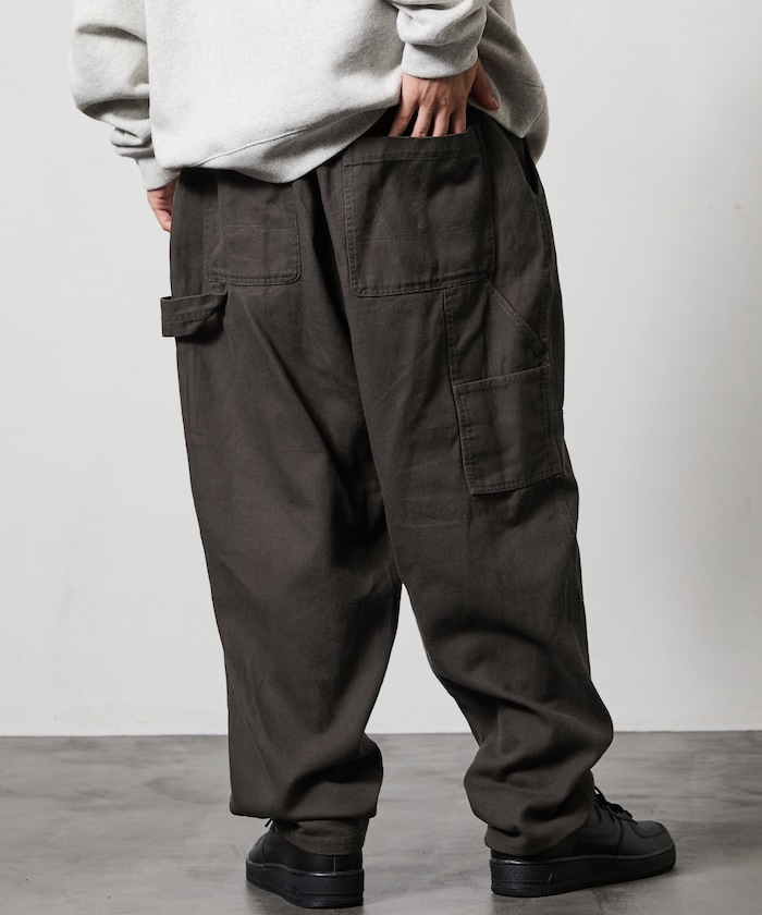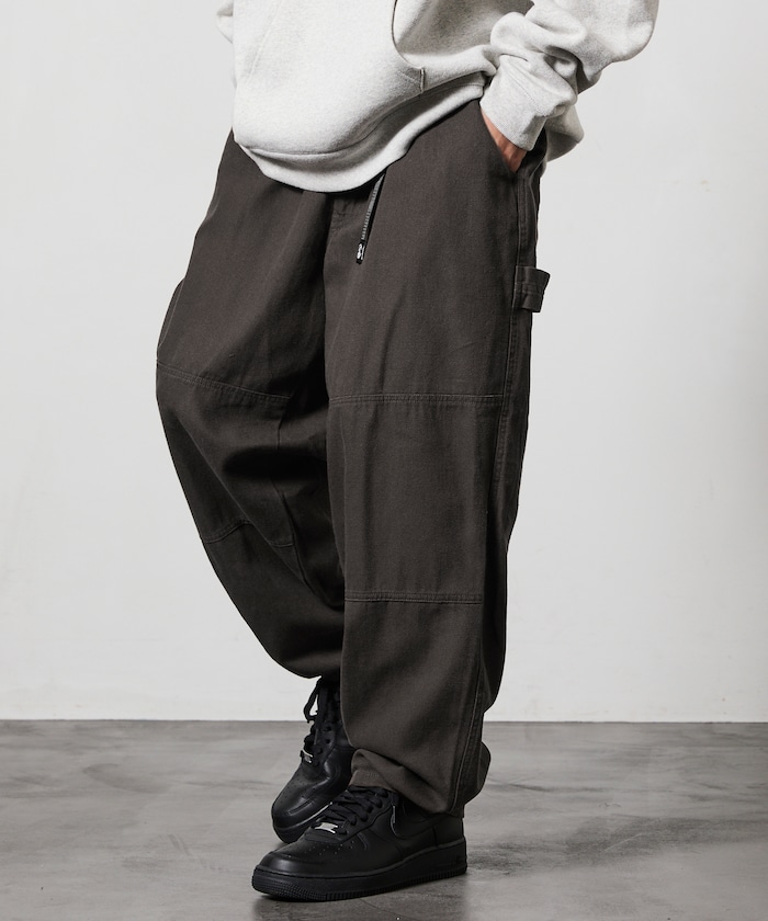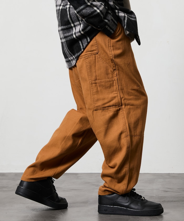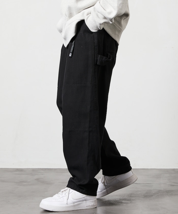 허리 부분에 웨빙 벨트 포인트가 있으며 해머 루프·더블 니 등 워크웨어 디테일이 있습니다.