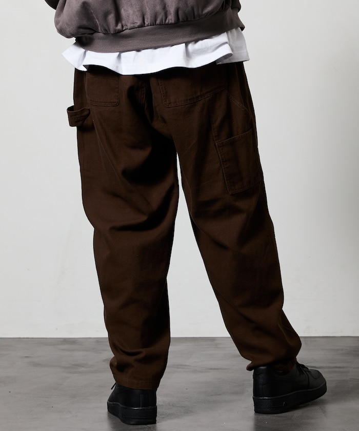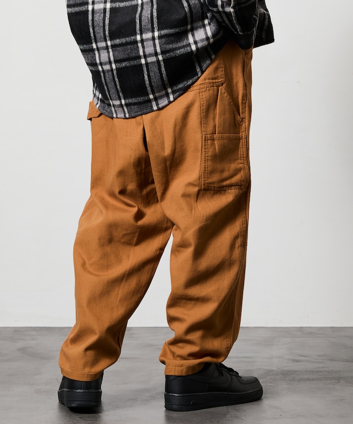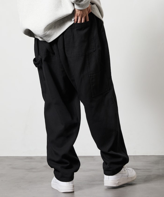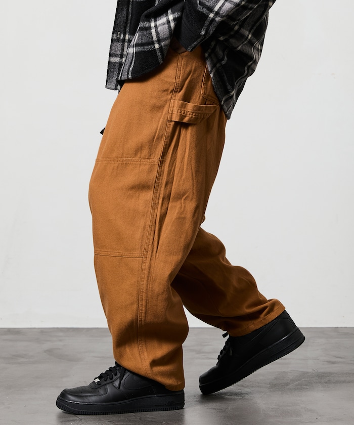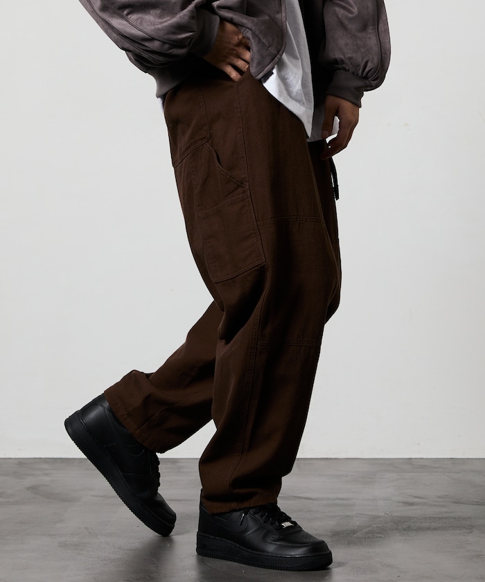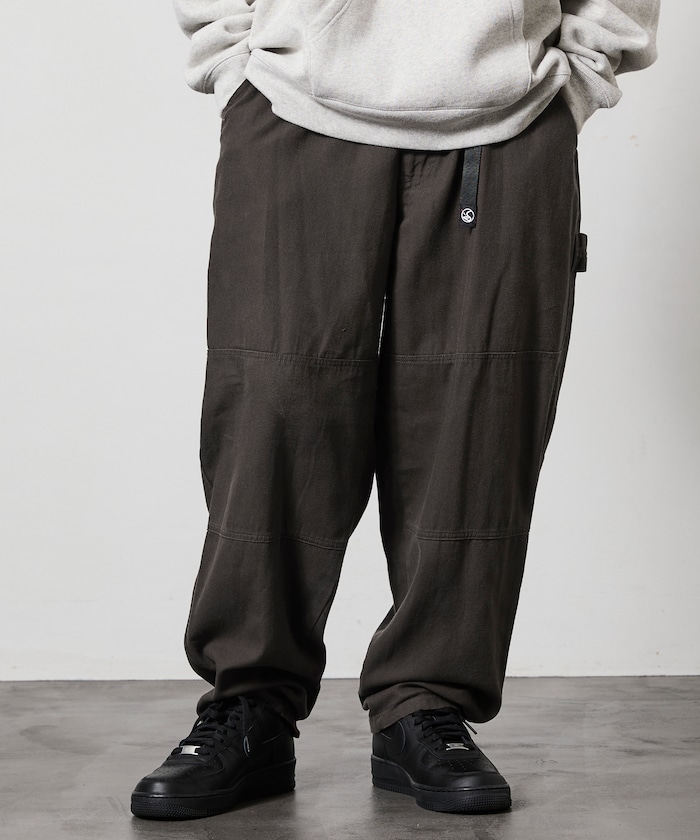 허리 부분에 웨빙 벨트 포인트가 있으며 해머 루프·더블 니 등 워크웨어 디테일이 있습니다.