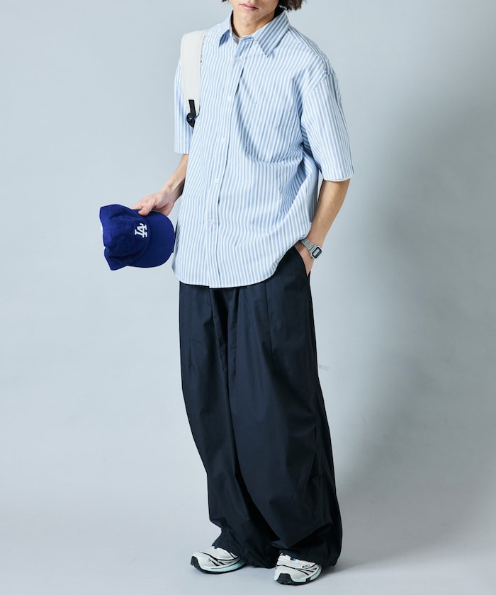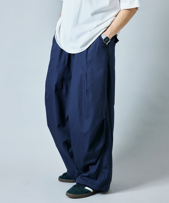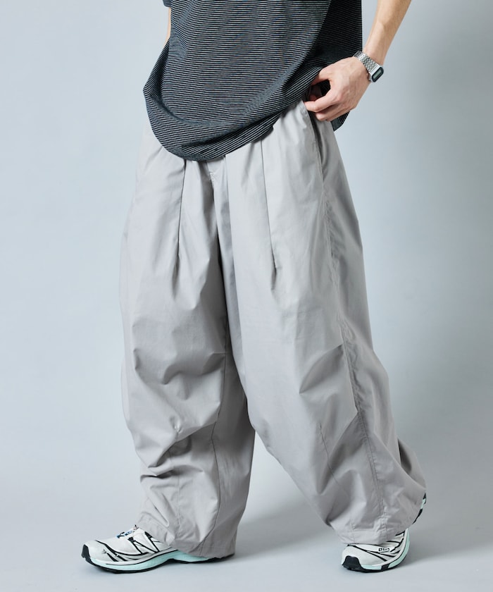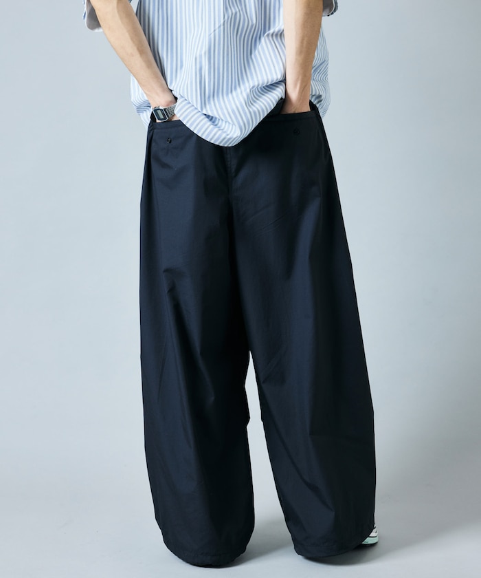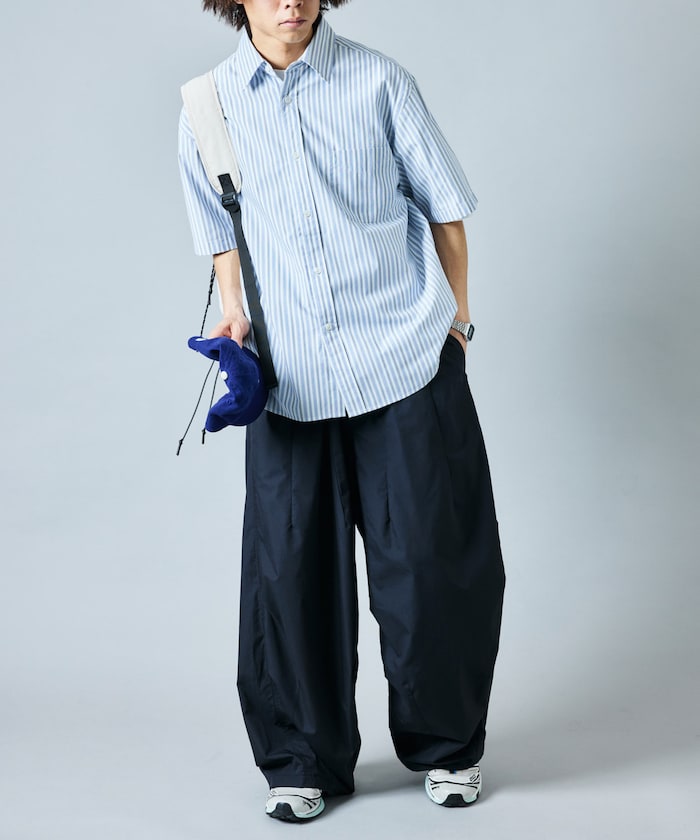 나일론처럼 바삭하고 드라이한 감촉의 라이트웨이트 트윌 원단 으로, 움직임에 따라 자연스럽게 연출되는 경쾌한 분위기 가 매력입니다.