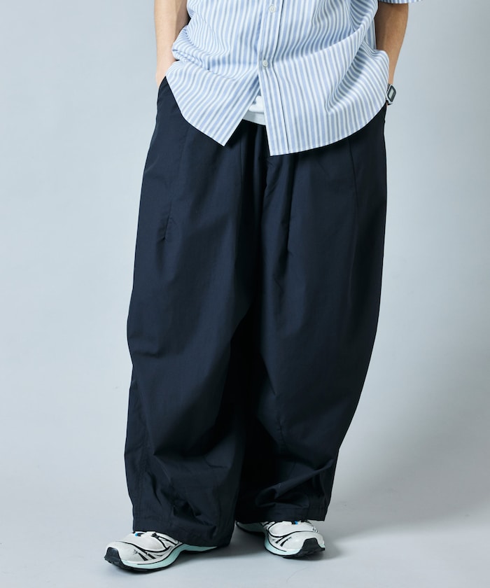 봄·여름 착용에 적합한 가벼운 소재와 배럴형 실루엣이 특징인 신상품 팬츠입니다.