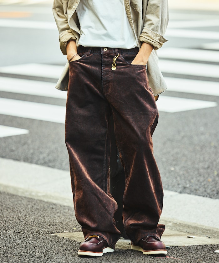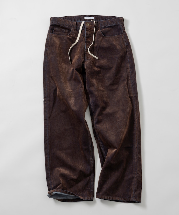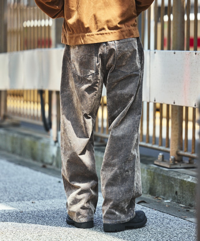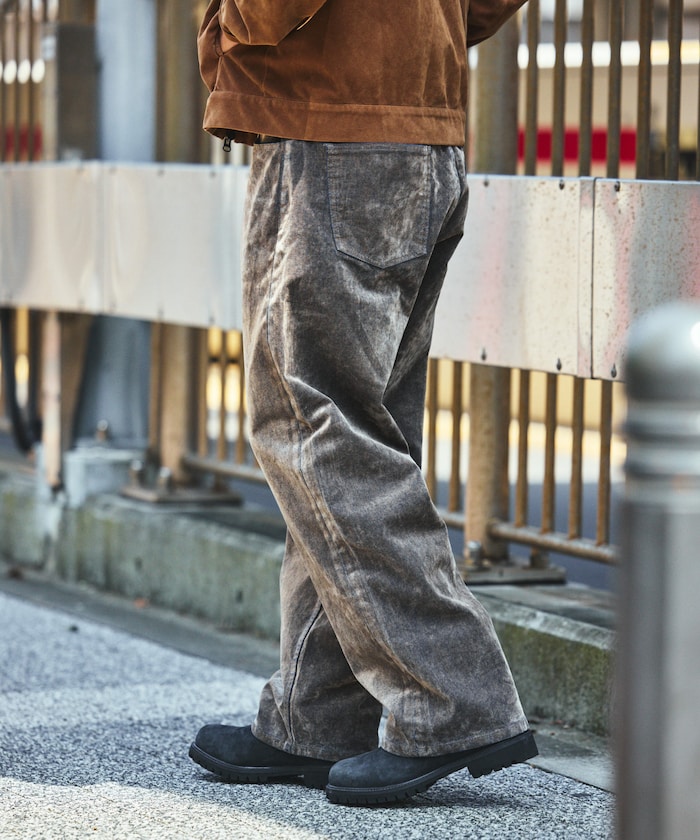 적당한 두께감의 데님 원단 위에 플로킹 프린트를 더해 트렌디한 분위기의 팬츠.