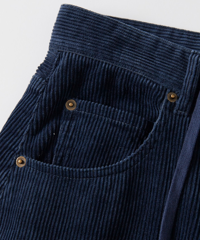옆선부터 밑단까지 감싸듯이 들어간 더블 스티치로 입체적인 실루엣의 코듀로이 팬츠