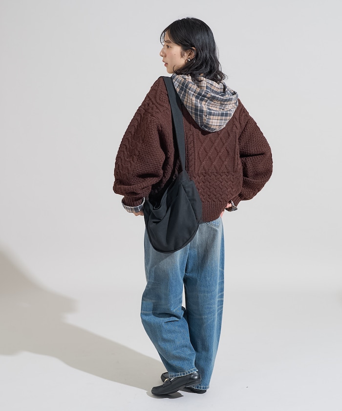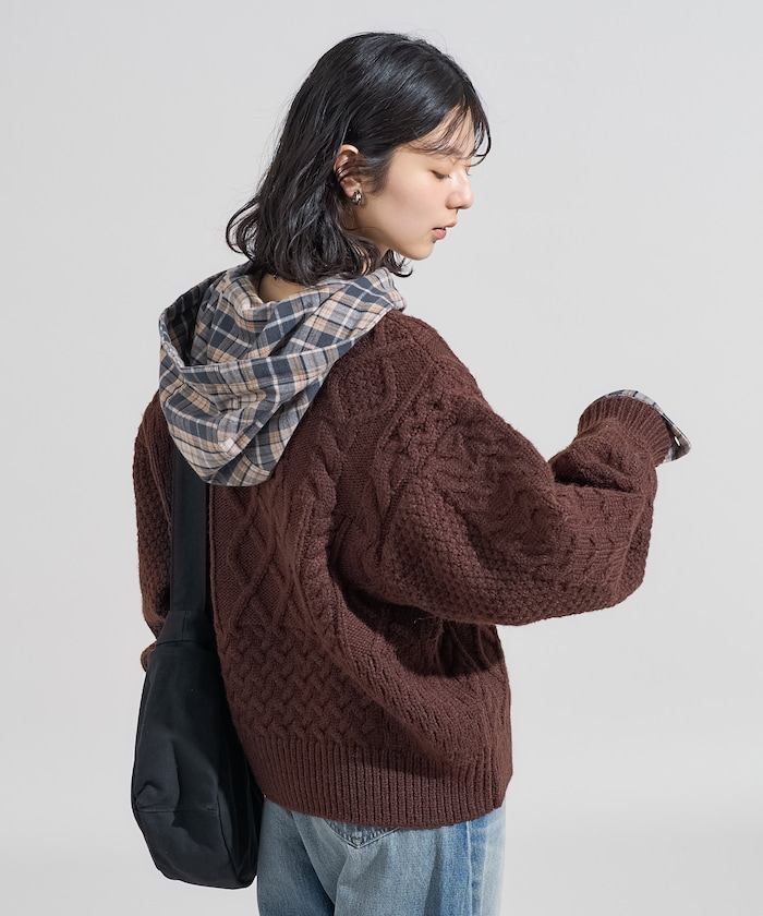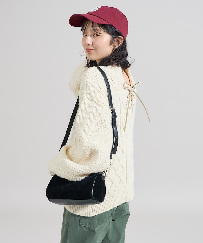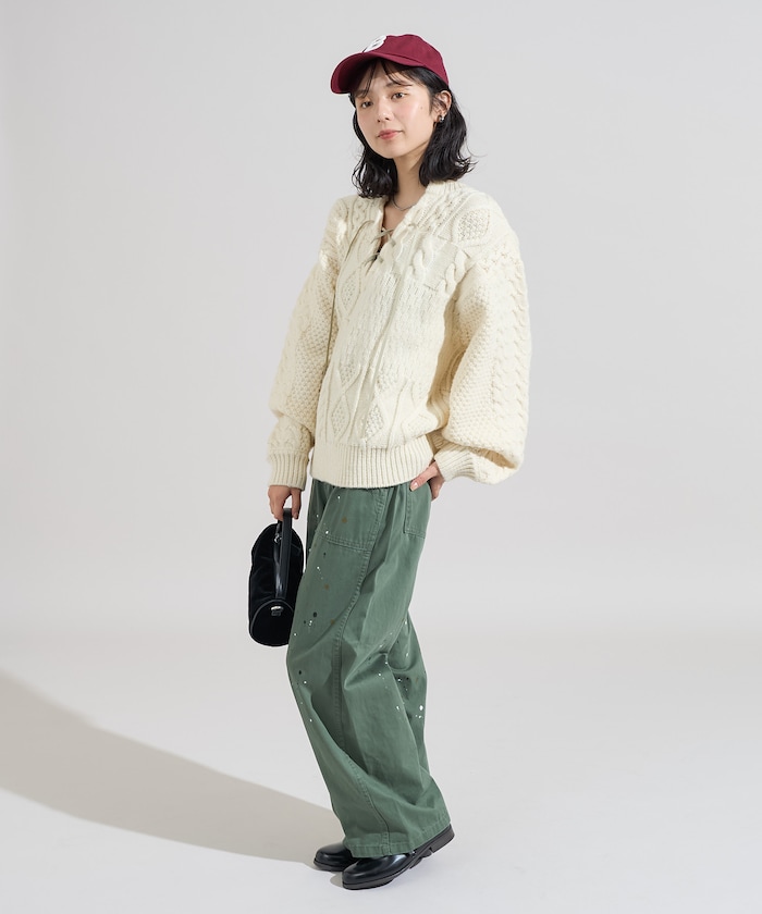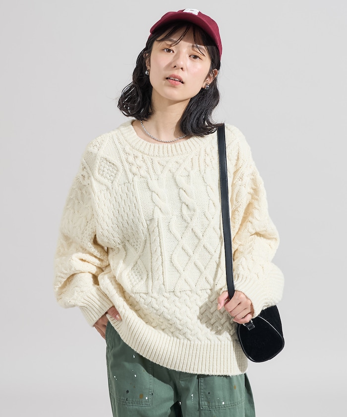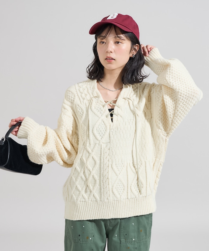 클래식한 케이블 니트를 레이스업 디테일로 리메이크 한 듯한 디자인의 니트. 앞뒤를 2way로 착용 가능하며 도톰한 소재로 겨울까지 입을 수 있습니다. 오버사이즈 실루엣.