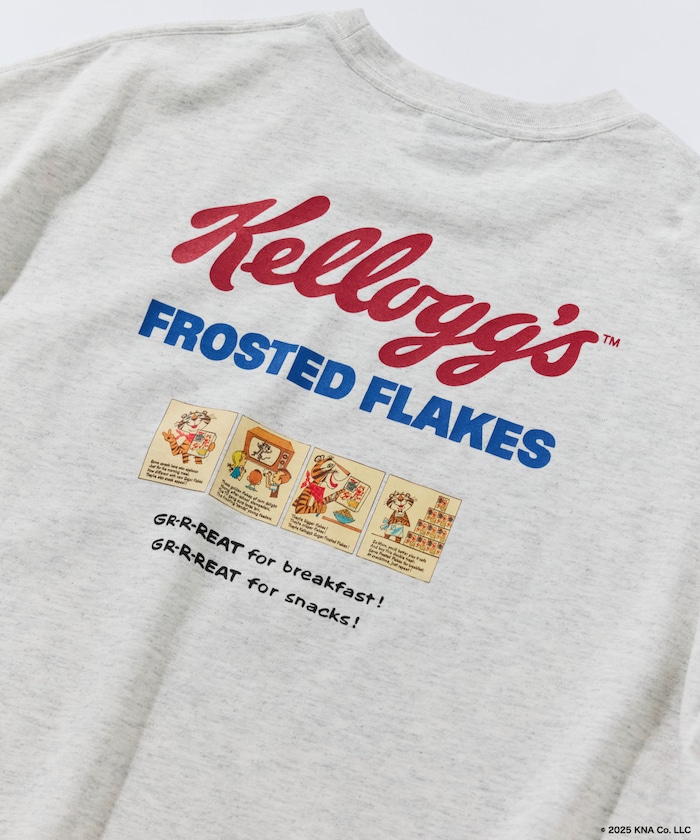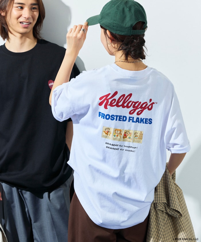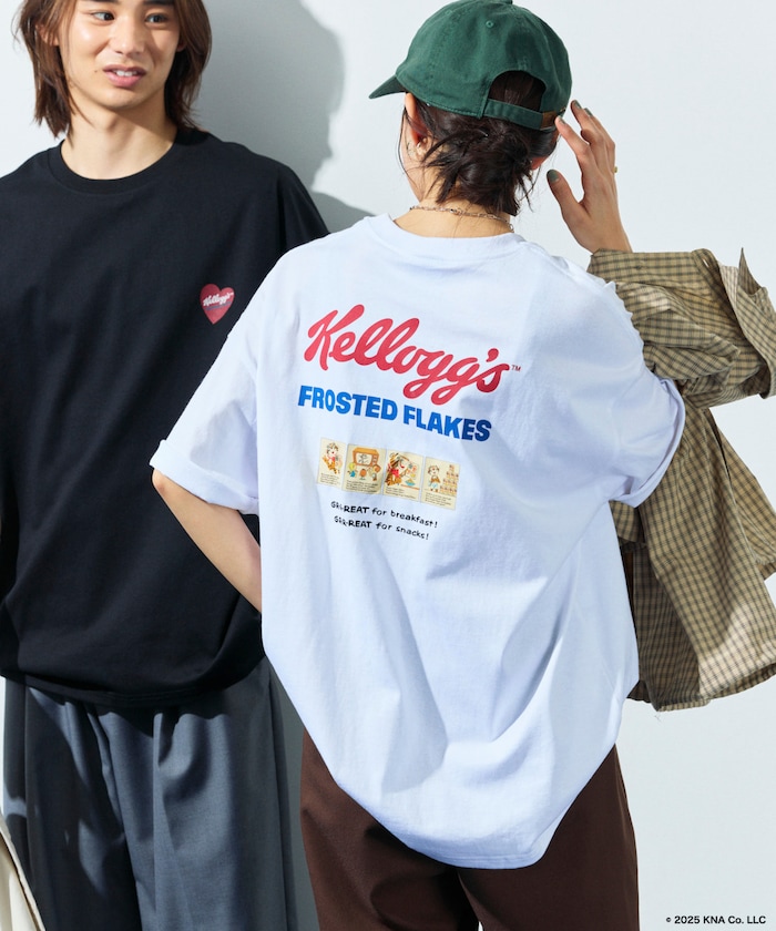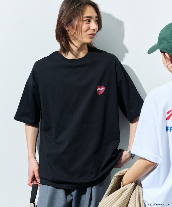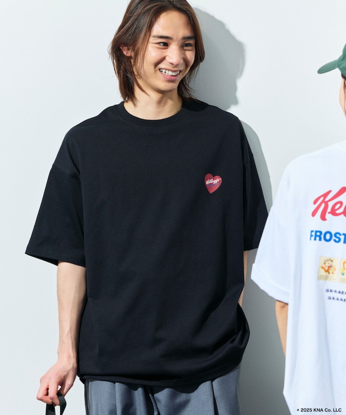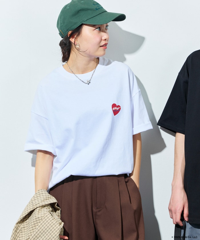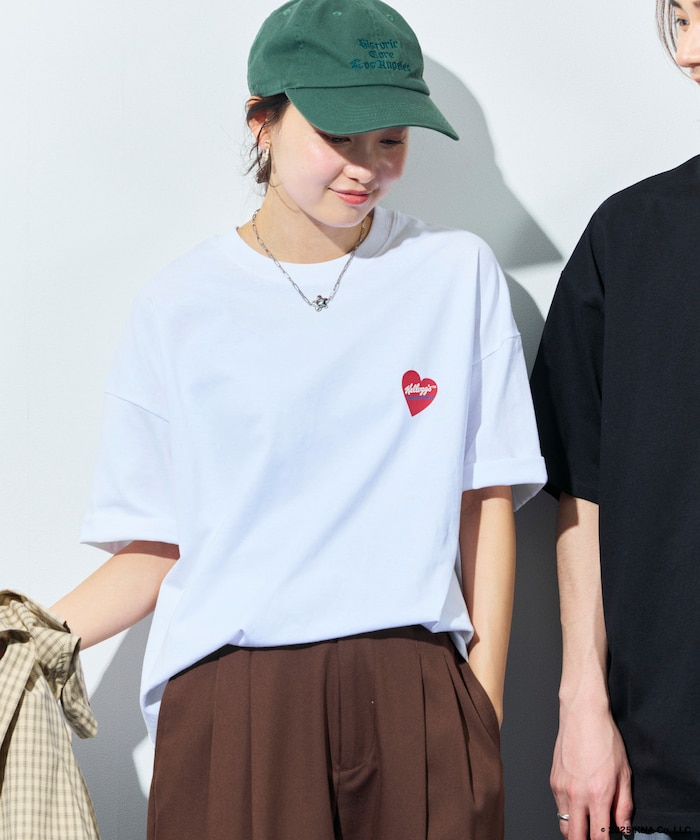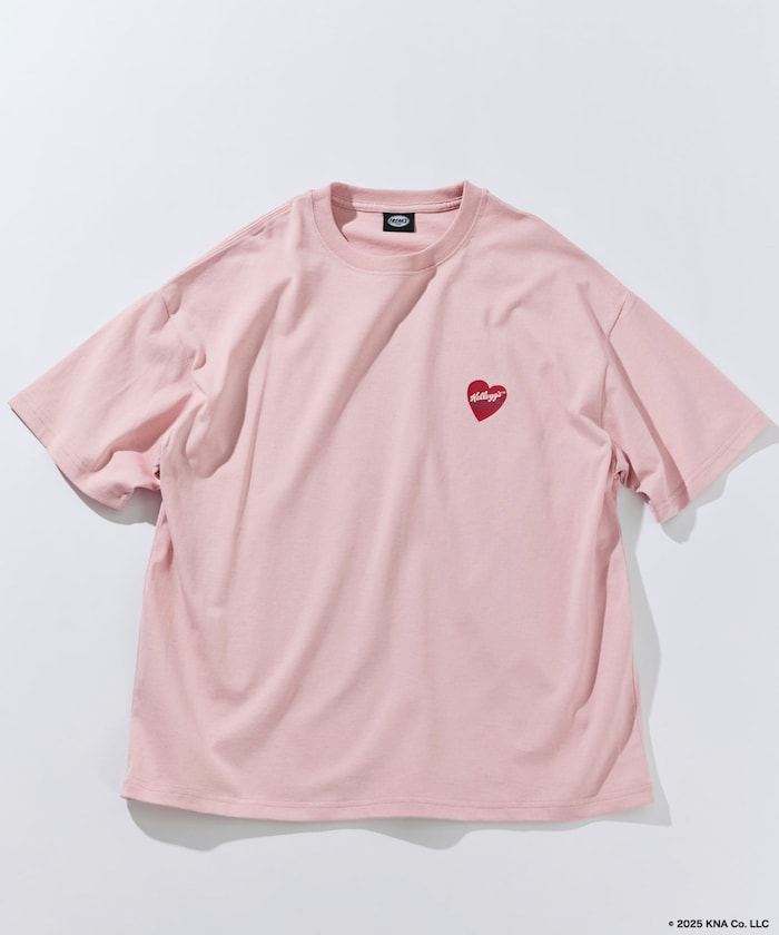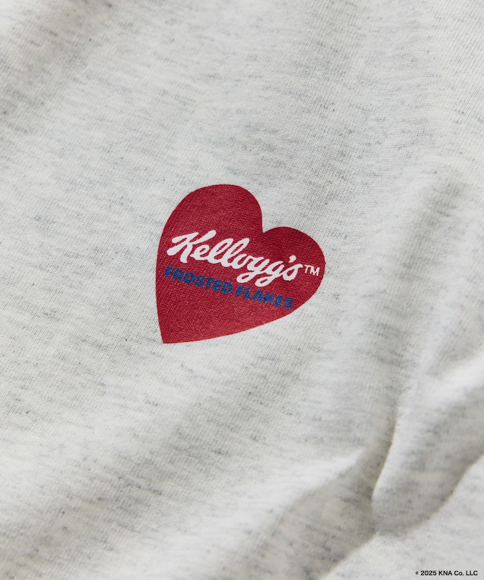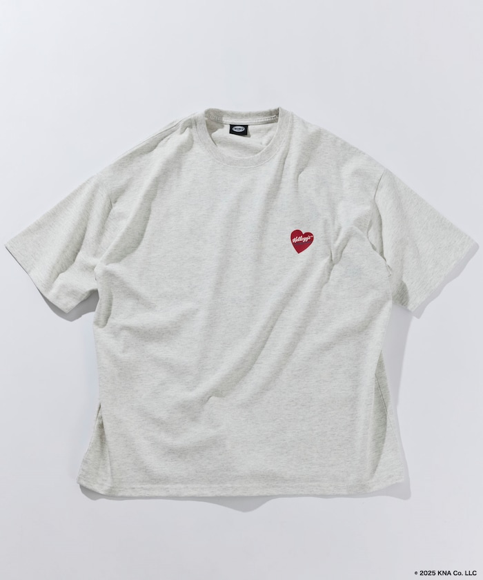 뒷면 켈로그 로고를 재해석한 오리지널 백 프린트가 있으며 가슴에 하트 디자인의 로고 포인트 자수가 있습니다. 트렌드한 적당한 오버핏 실루엣입니다.
