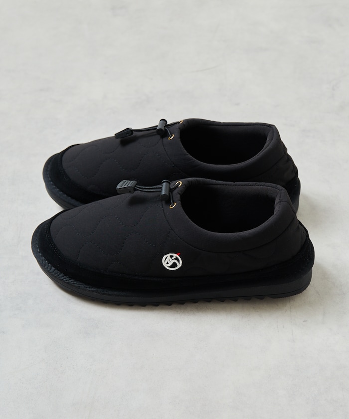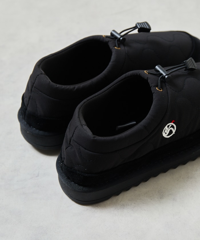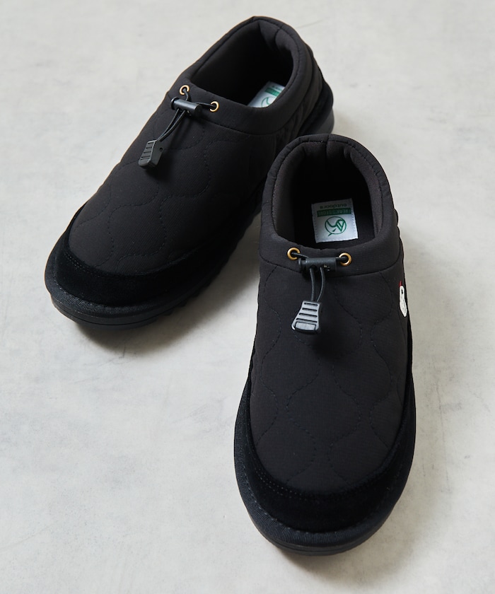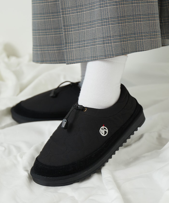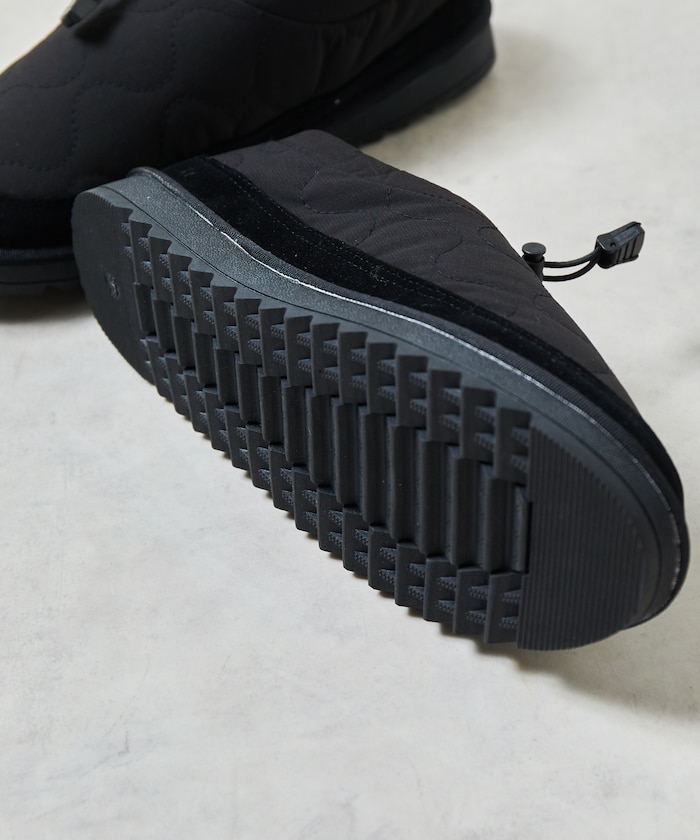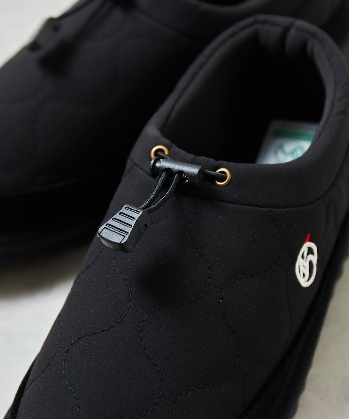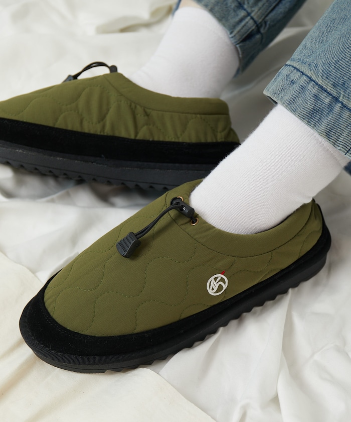 어퍼 전체를 밀리터리 무드의 퀼팅 원단으로 감싸 개성 있고 트렌디한 스타일의 슬립온